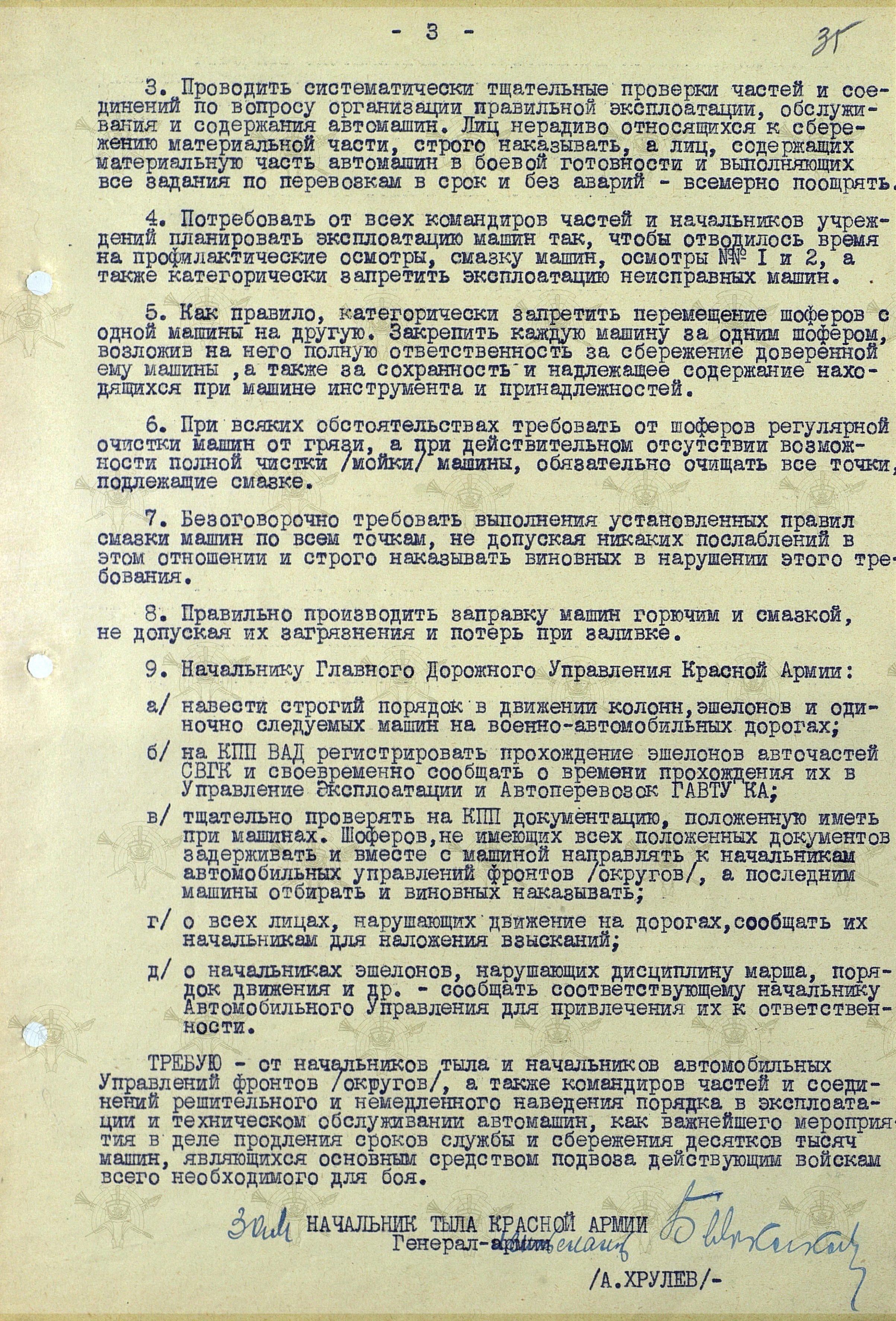 А теперь о приказе. По сути, он состоит из двух частей: собственно приказной части, в которой констатируется сложившаяся обстановка, перечисляются наиболее вопиющие недостатки и перечисляются мероприятия, выполнение которых позволит улучшить состояние автопарка и сберечь автомобильный транспорт. Вторая часть - собственно Инструкция по эксплуатации и техническому обслуживанию автомашин парка Красной Армии.