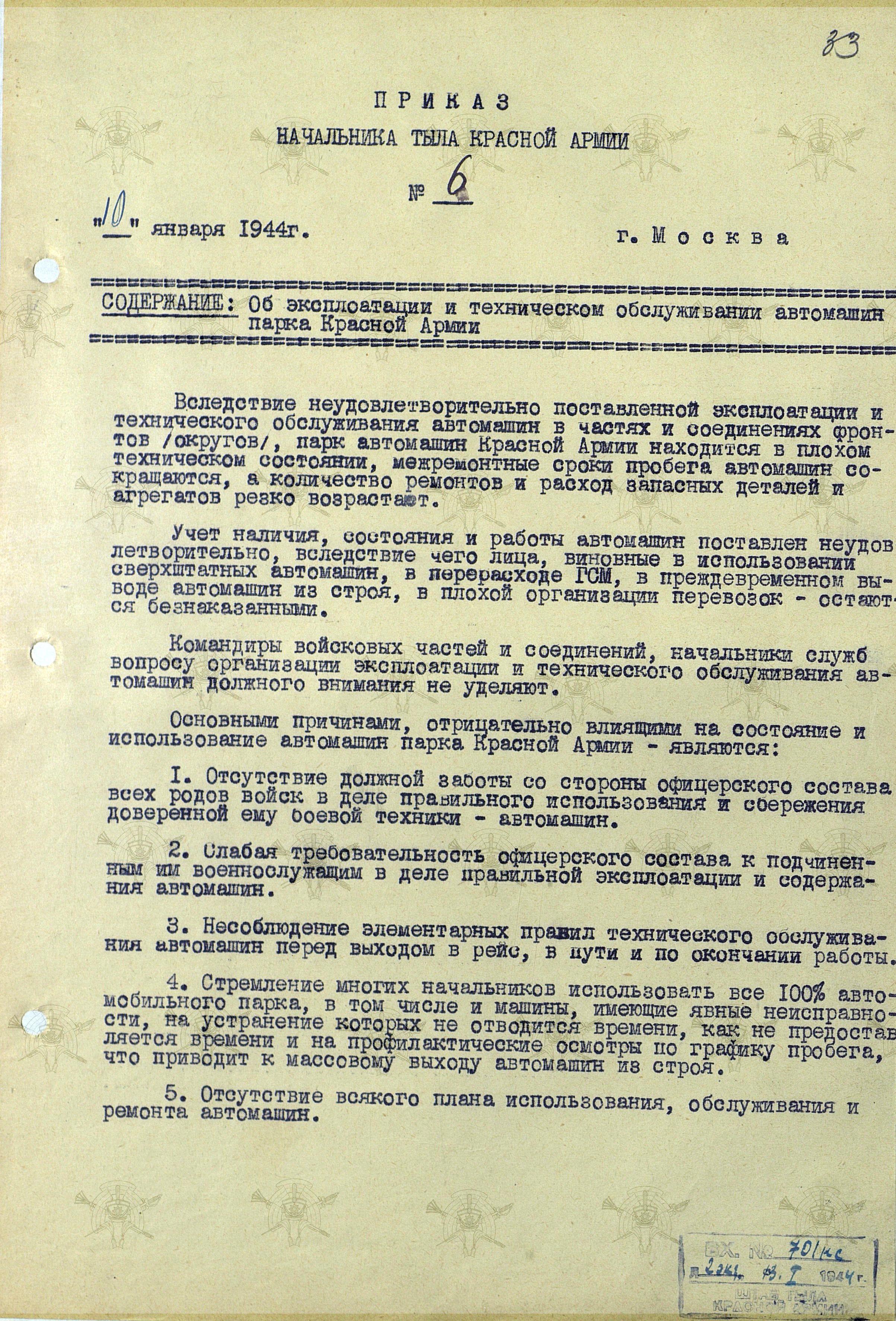 Приказная часть сильного удивления не вызывает, похожая риторика встречается и в послевоенных приказах Советской Армии, да и созданная в 1992 году армия Россия в вопросах эксплуатации и техобслуживания автотехники тоже не блистала.