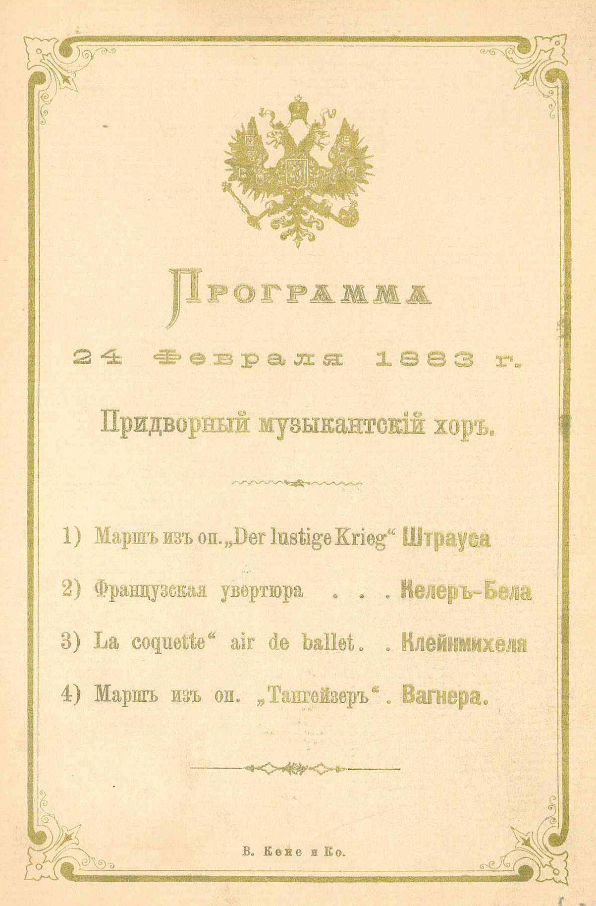 Автор: Игорь Резников29 июня 1882 года указом императора Александра III для обслуживания дворцовых церемоний из музыкантов хоров (так именовались тогда военные оркестры) Кавалергардского и Лейб-гвардии Конного полков был образован Придворный музыкантский хор, первый профессиональный симфонический оркестр России. Во исполнение этого повеления была сформирована под председательством Принца Александра Петровича Ольденбургского комиссия, в состав вошли начальник штаба I Гвардейской пехотной дивизии полковник Аркадий Платонович Скугаревский, полковые адъютанты названных полков и генерал-майор барон Константин Карлович Штакельберг, назначенный начальником Придворного музыкантского хора - он прослужил в этой должности 35 лет. Константин Карлович написал несколько музыкальных произведений под псевдонимом Ceeste. Создал похоронный марш в память о погибших за Родину («Mortius plango»), «Молитву» – в память о великой княжне Ольге Николаевне, «Свадебный марш», посвященный бракосочетанию принцессы Луизы (урожденной графине Баттенбергской) и шведского кронпринца Густава Адольфа, романс «Замело тебя снегом, Россия».
