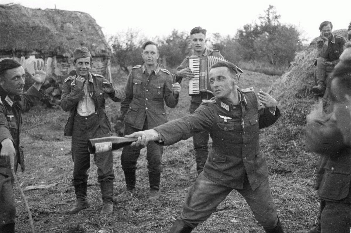 Фашисты развлекаются. Уцелевшее шампанское им пришлось по нраву. Фото из интернета.