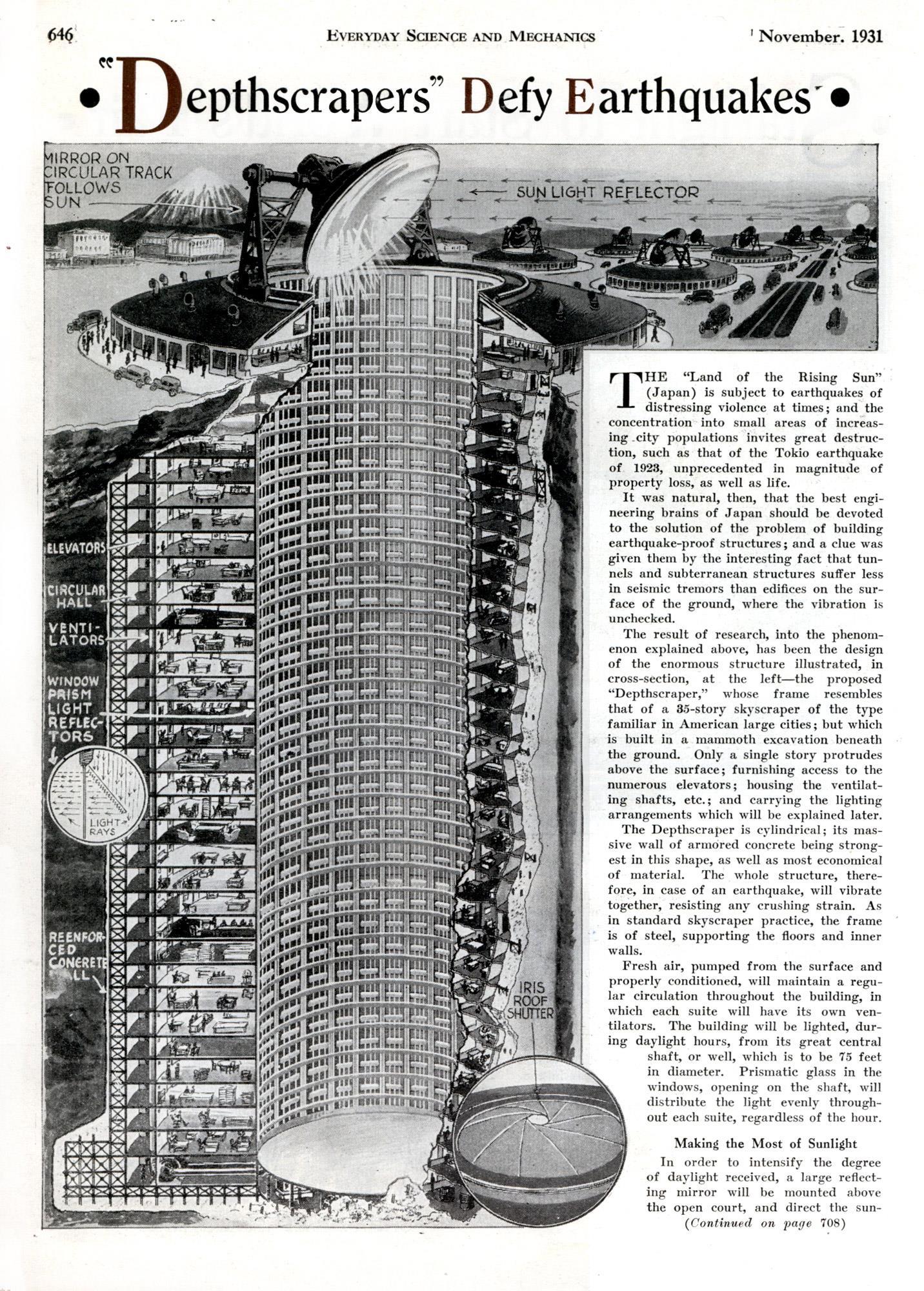 Небоскрёб наоборот - здание рвется не в ввысь, а в глубь. Освещается при помощи солнечных рефракторов