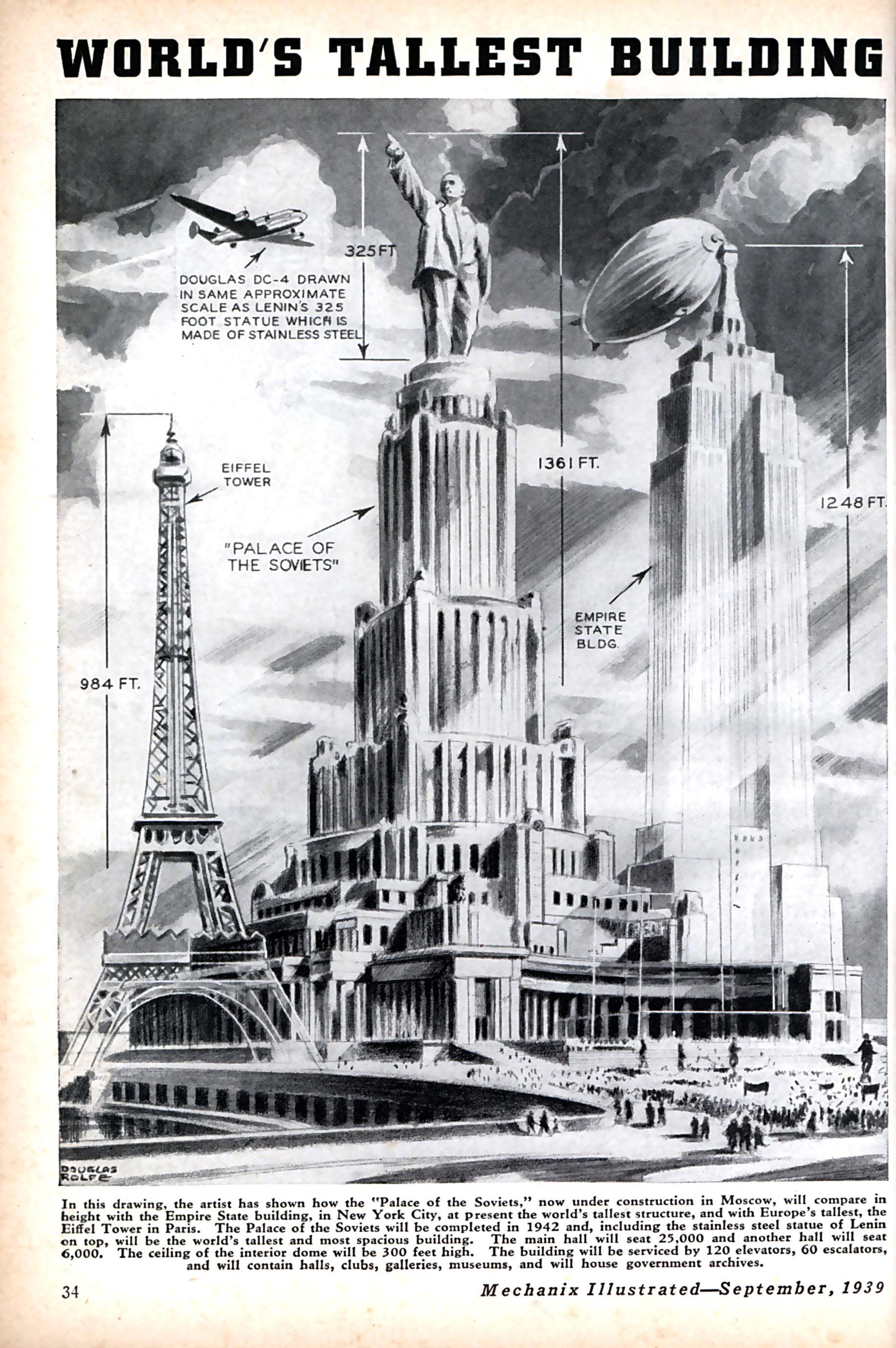 Высочайшие небоскребы мира. С Лениным - это московский Дом советов, который так и не построили, хотя собирались
