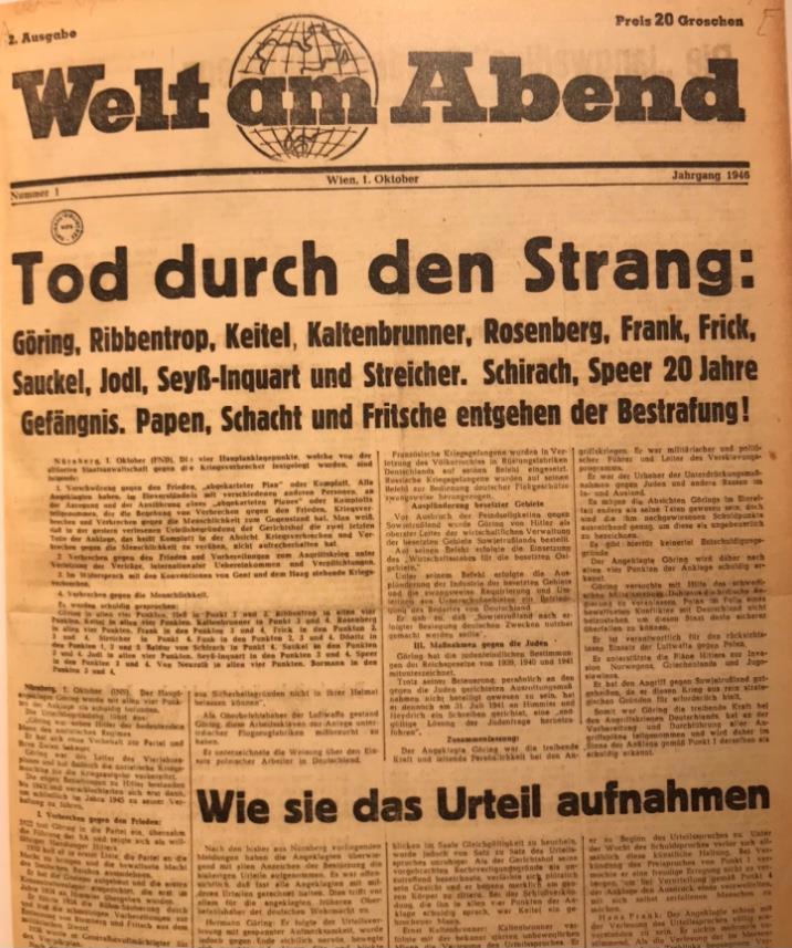 Первый номер венской газеты с сообщением о приговоре и как его восприняли подсудимые