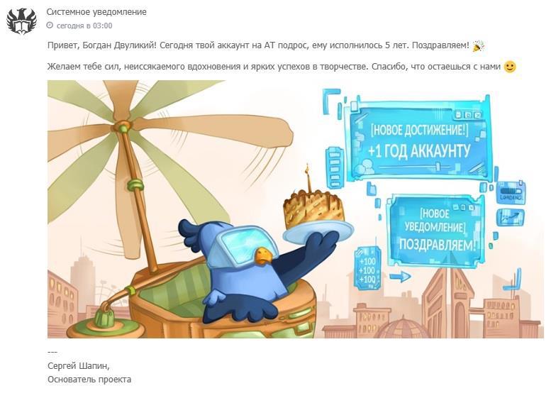 Мне 5 лет на АТ, оказывается, и меня поздравили