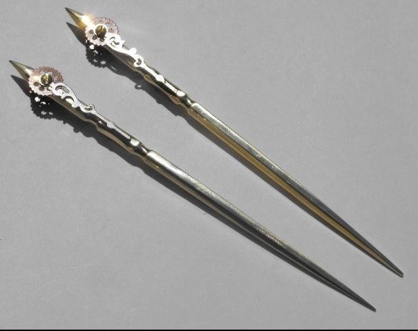 Приказав заточить металлический стержень с одной стороны она использовала заколку по прямому назначению вставляя в причёску во время официальных приёмов, балов и других торжеств. Как только из-за затянутого корсета у матушки темнело в глазах, она ловко просовывала руку под платье и раз! Разрезала тесёмки.