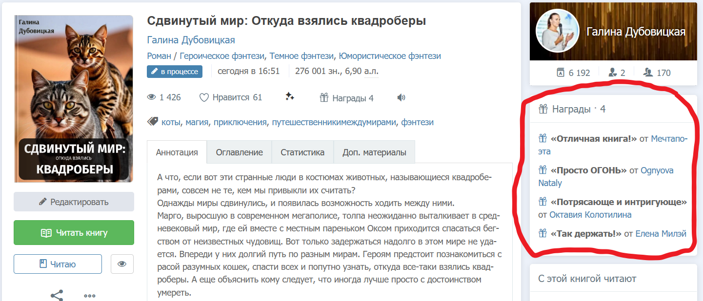 Автор: Галина ДубовицкаяЯ еще не получила Коммерческий статус, а только пробую выполнить, необходимые для него требования. Но перед тем, как публиковать свой первый роман, подключила Награды. Это оказалось совершенно просто: подала заявку, заполнила анкету, распечатала, подписала, загрузила в личный кабинет и всё.
