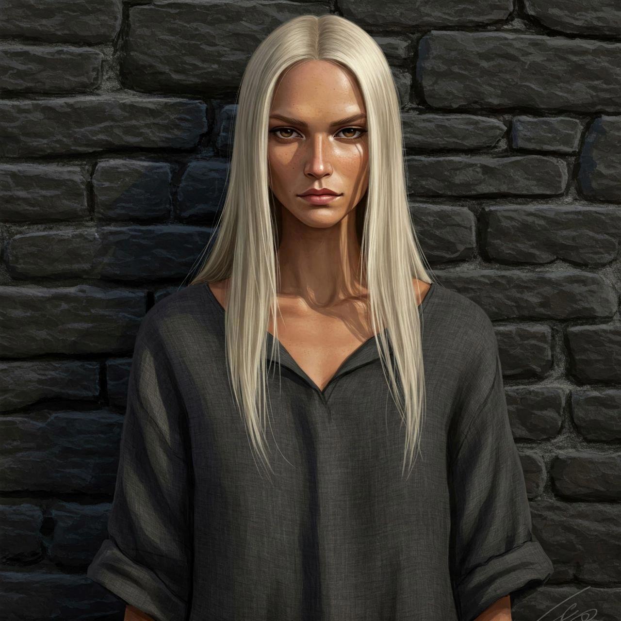 Внешность: волосы светлые, глаза карие; стройная (и высокая, как шпала)