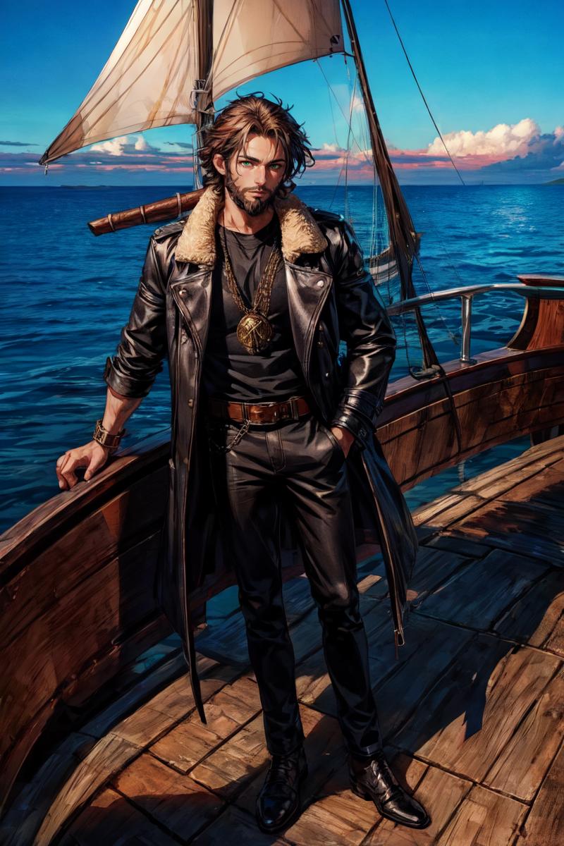 Названный пират - сам считает себя воином. Пока что его прошлое мало известно, но когда то в прошлом он был Искателем Приключений в составе группы молодых людей. В данный момент, как узнается Лино, командующий поморскими (раскийскими) силами. Мало придает значения своим регалиям и в качестве, по его собственному признанию - праздного действа присоединился к охране принца Константина в его путешествии. В действительности, мало что известно о его реальных мотивов, но как выяснил Лино - он уже давно жаждет смерти и одновременно страшиться ее. Заявка на глубокую депрессию.