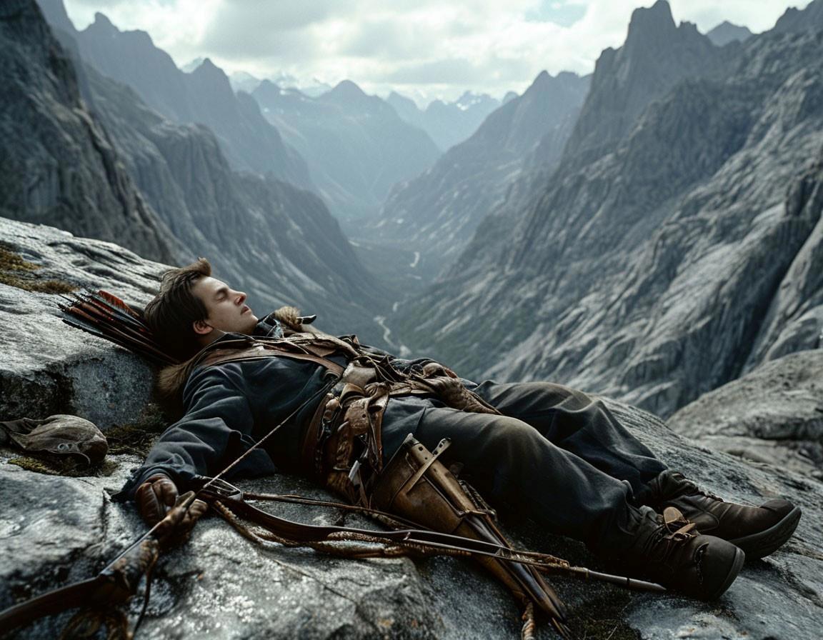 У подножья скал лицом вниз лежал человек. Им оказался второй лучник. Но мужчина был уже мертв, упав со скал, подстреленный чужой стрелой. Лук отлетел от него на пару метров, на спине был почти полный колчан стрел. Не думая о мертвеце, прибежавшая стянула с него колчан и забросила себе на плечо. В этой ситуации лишние стрелы не помешают, а о мертвых будут скорбеть после того, как остальные смогут выжить.