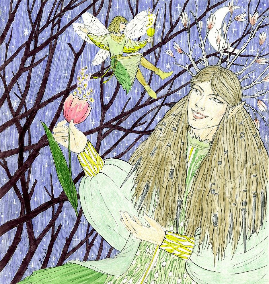 ...Вторая картинка почти год уже обитает на АТ и тоже своего рода такая удачная компиляция «на тему». Просто два разных эльфа пьют бодрящее весеннее винцо из соответствующей посуды)