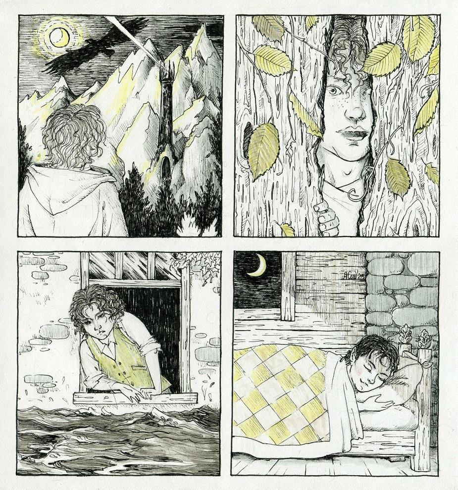 Недавно опять заглядывала в первую часть «Властелина Колец», и вот придумалось такое – про пребывание хоббитцов в доме Тома Бомбадила и сны, которые им там приснились.