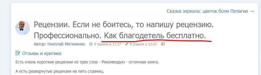 Оказалось, что у господина Члена Союза есть дохерища времени целый критический сборник неких анализов чужих произведений. Две недели назад он ознакомился с моим творчеством и даже написал о нём. Смотрим на дату: четвёртое апреля. Ссылка.