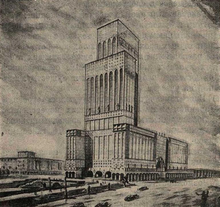 Автор: Марципана КонфитюрВ своих книгах я люблю "реализовывать" проекты, имевшие место, но не осуществленные в действительности. Один из таких - здание Наркомата тяжёлой промышленности. Конкурс его проектов происходил с 1934 по 1936 гг., и там участвовали все главные архитекторы эпохи (Иофан, Ладовские, Мельников и т.д.). Построить наркомат предполагалось на Красной площади, где для этого снесли бы ГУМ, а, по некоторым проектам, и не только его. Чуть позже здание решили поместить на набережной, в Зарядье. До реализации дело так и не дошло, потому что умер наркомтяжпром Орджоникидзе, а вскоре его ведомство расформировали.