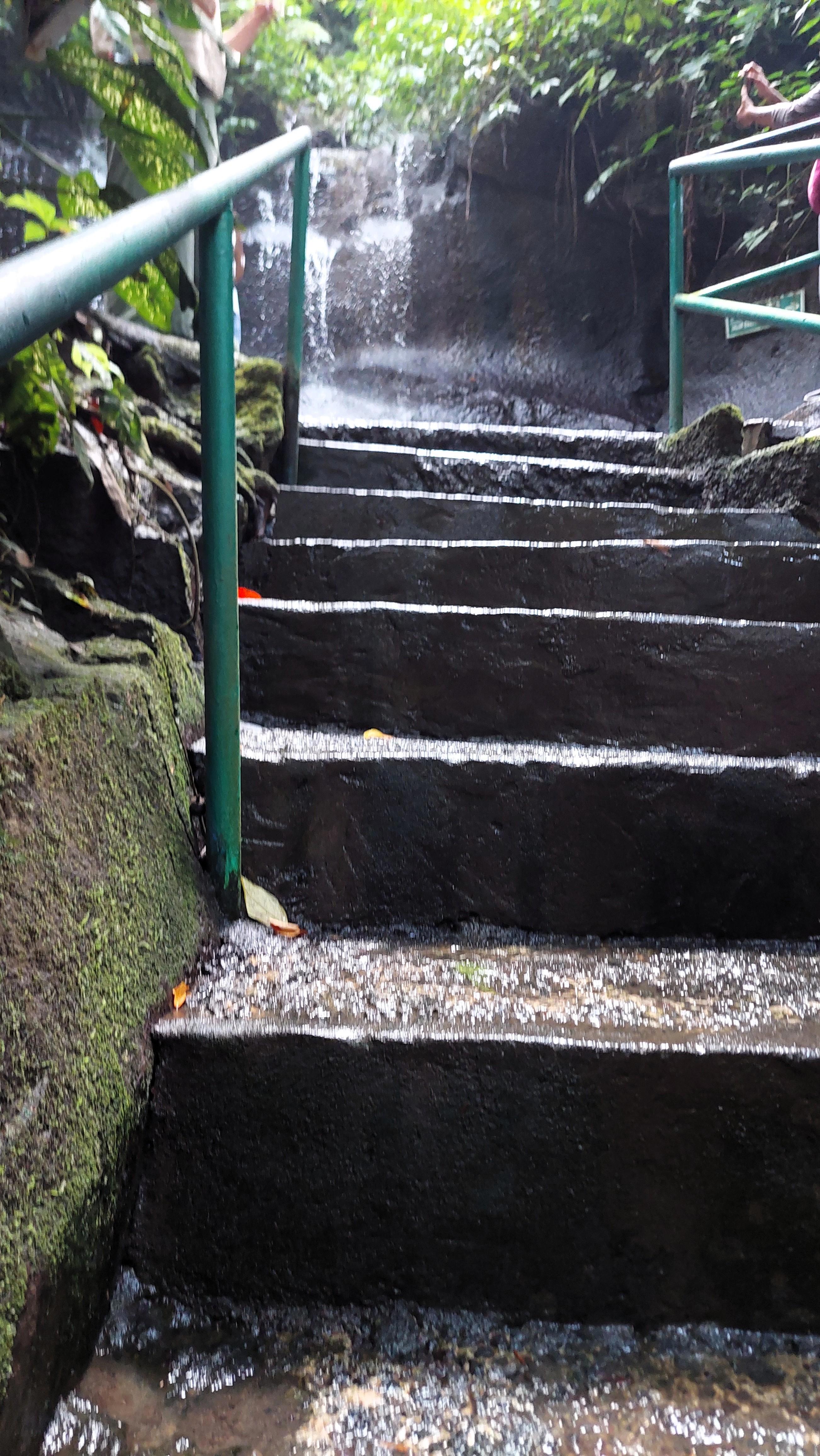 Прибыли на водопад «Kanto Lampo Waterfall», оплатили посещение. Душно. Впереди спуск к реке. Вооружился палками для ходьбы, потопали. Так и спускался, пытаясь не упасть на крутых ступеньках, при этом нужно «наслаждаться» видами, и фотать, фотать, а палки то мешают.