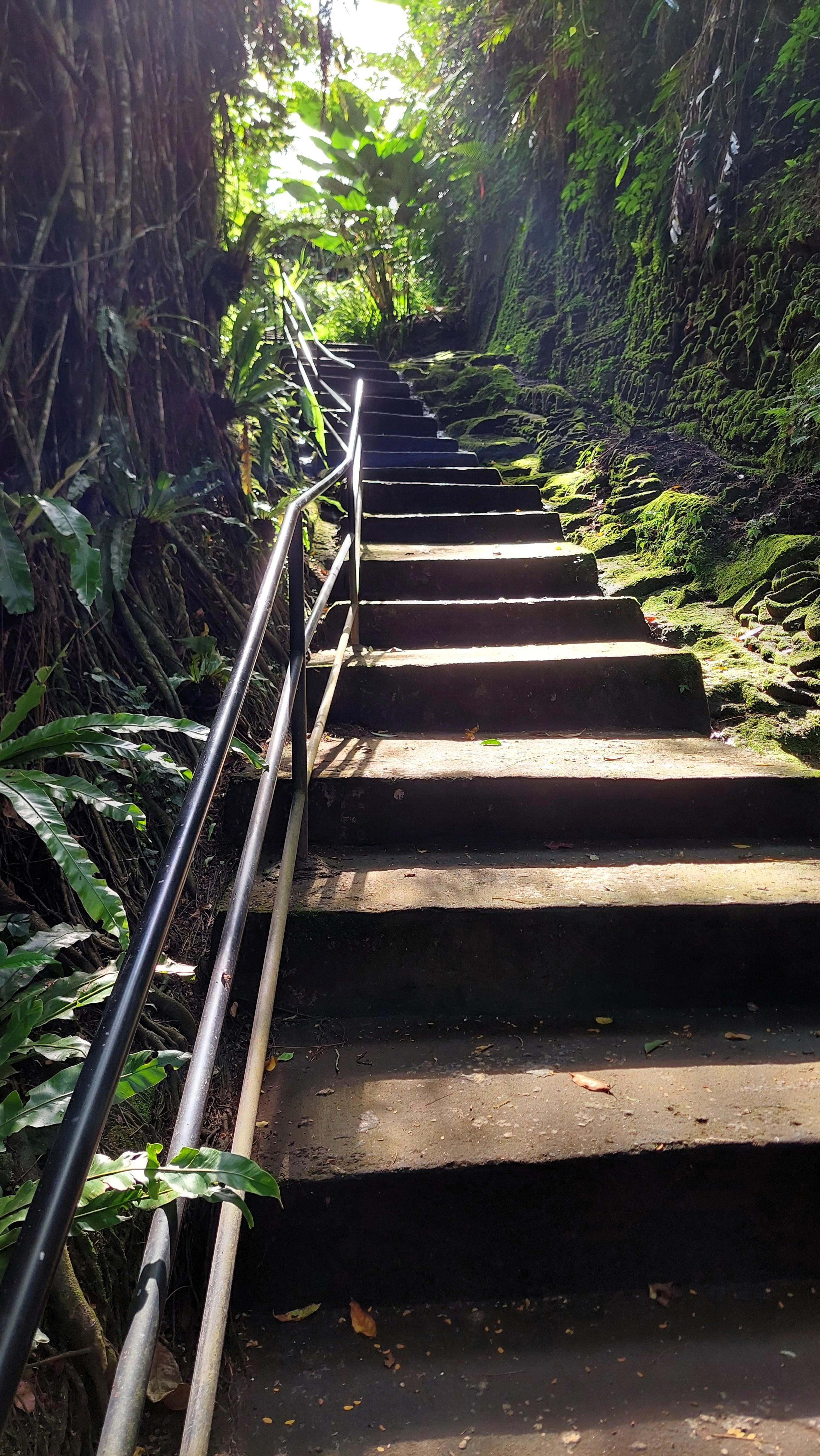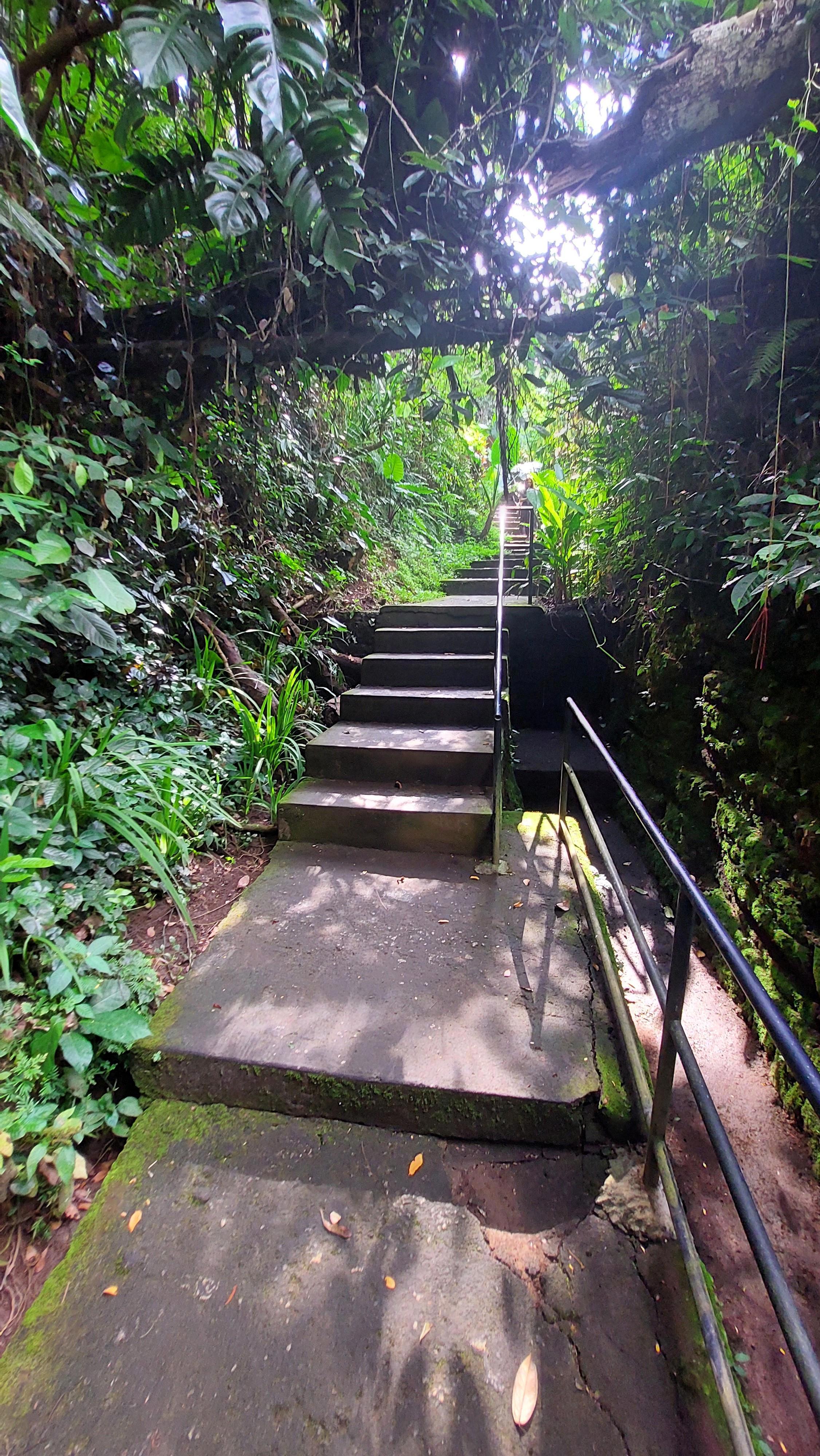 Как я уже отмечал ранее, территория водопадов принадлежит общинам, которые в меру своего понимания обустраивают подходы и место возле водопадов. Так вот, лестница ведущая к водопаду «GoaRangRengWaterfall» оформлена таинственно восхитительно. Провожаемые ненавязчивыми звуками риндика, в лучах заходящего солнца, мы окунулись в мир индейцев Мая.