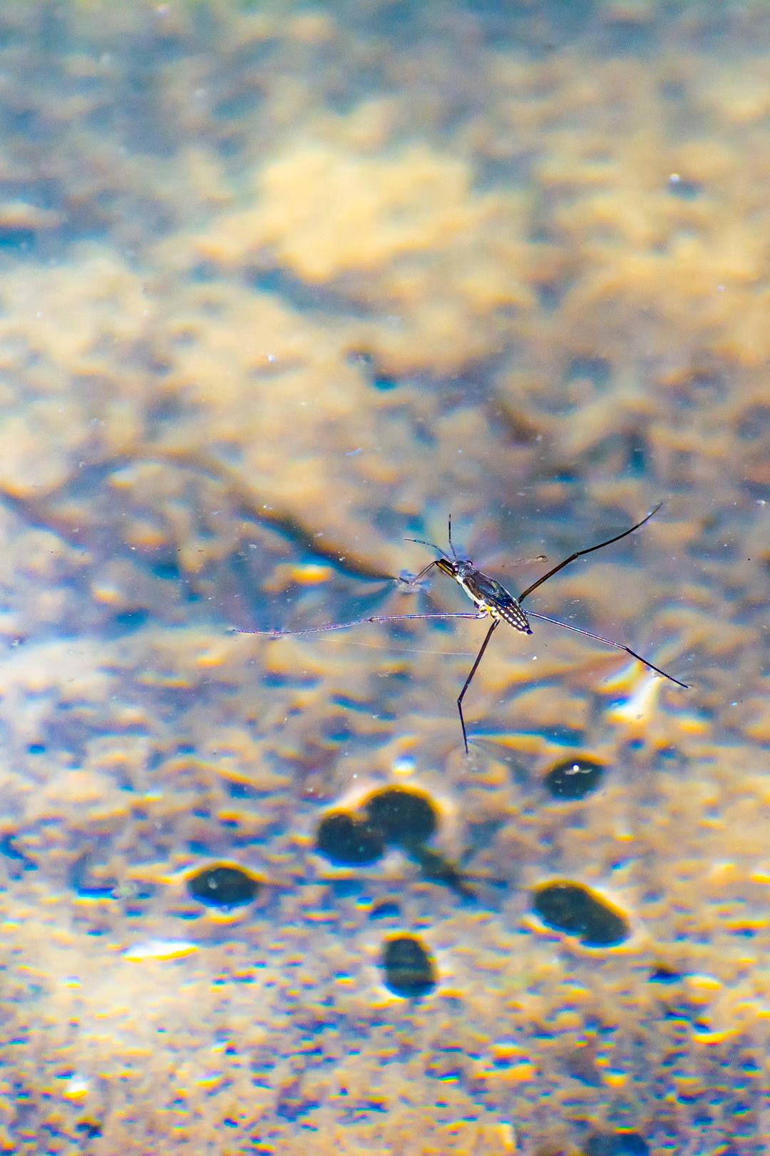 Вода прозрачная. Тень от водомерки лежит на чистом дне. Фото Сергея Малышева.