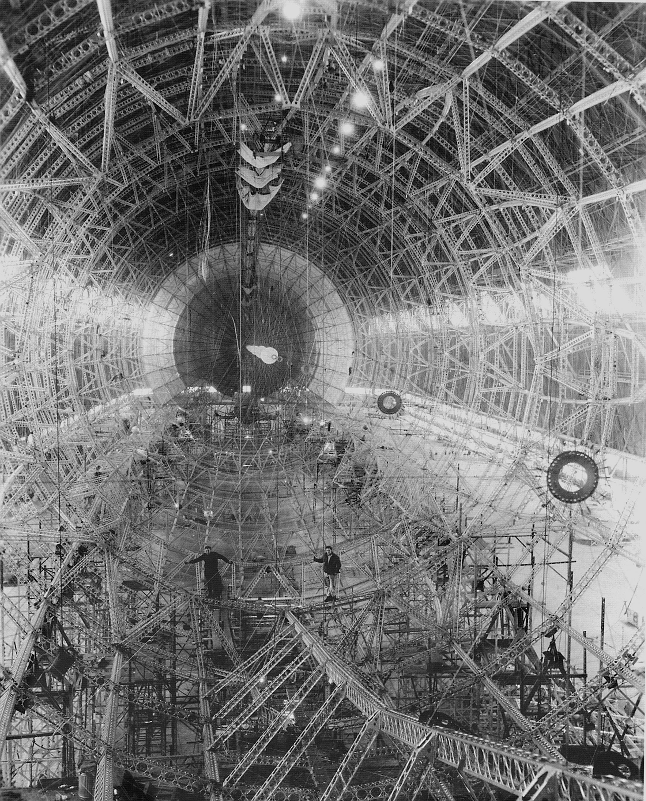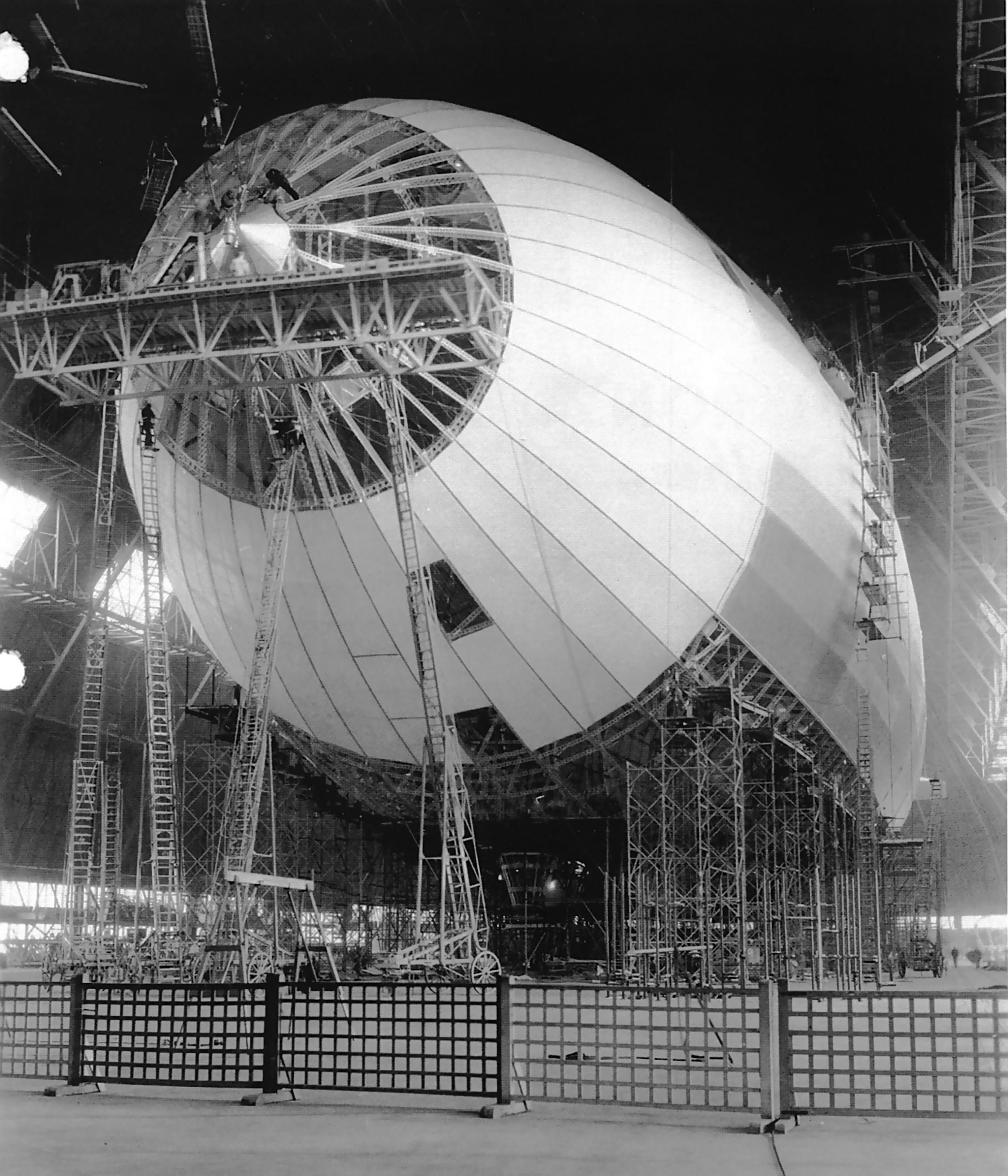 Строительство американского дирижабля жесткого типа, вид с разных ракурсов