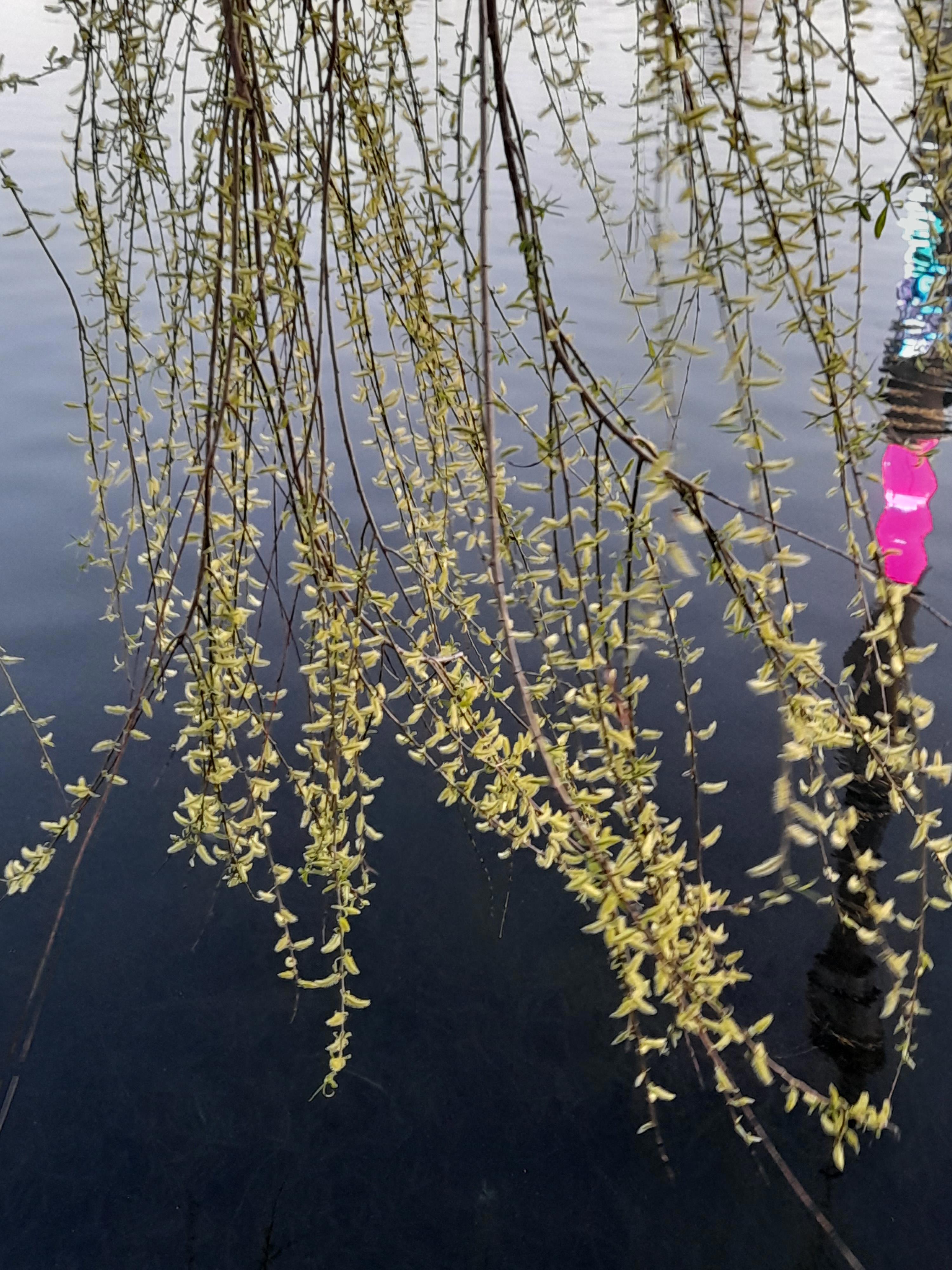 В пруду, если присмотреться, видны затонувшие осенние листочки...