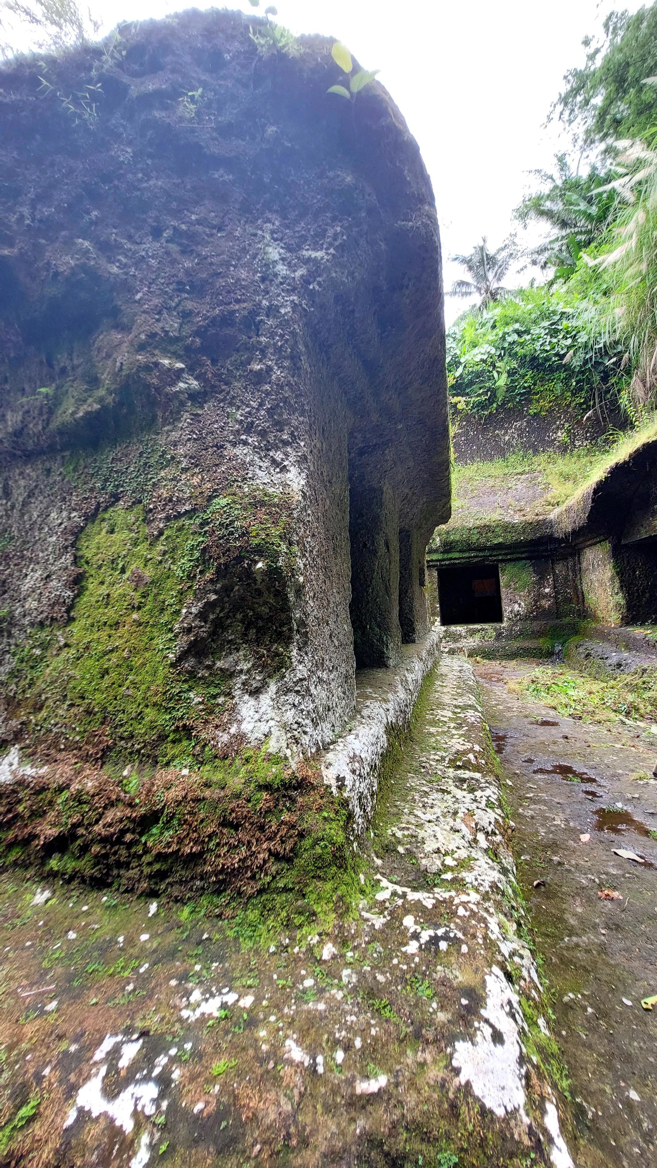 Прошли между Расщеплёнными воротами. Слева вход в рыхлом камне, и надпись - входить без обуви. Перед нами кельи для индуистских священников. Ну ок. Уважим, хотя босиком не очень комфортно.