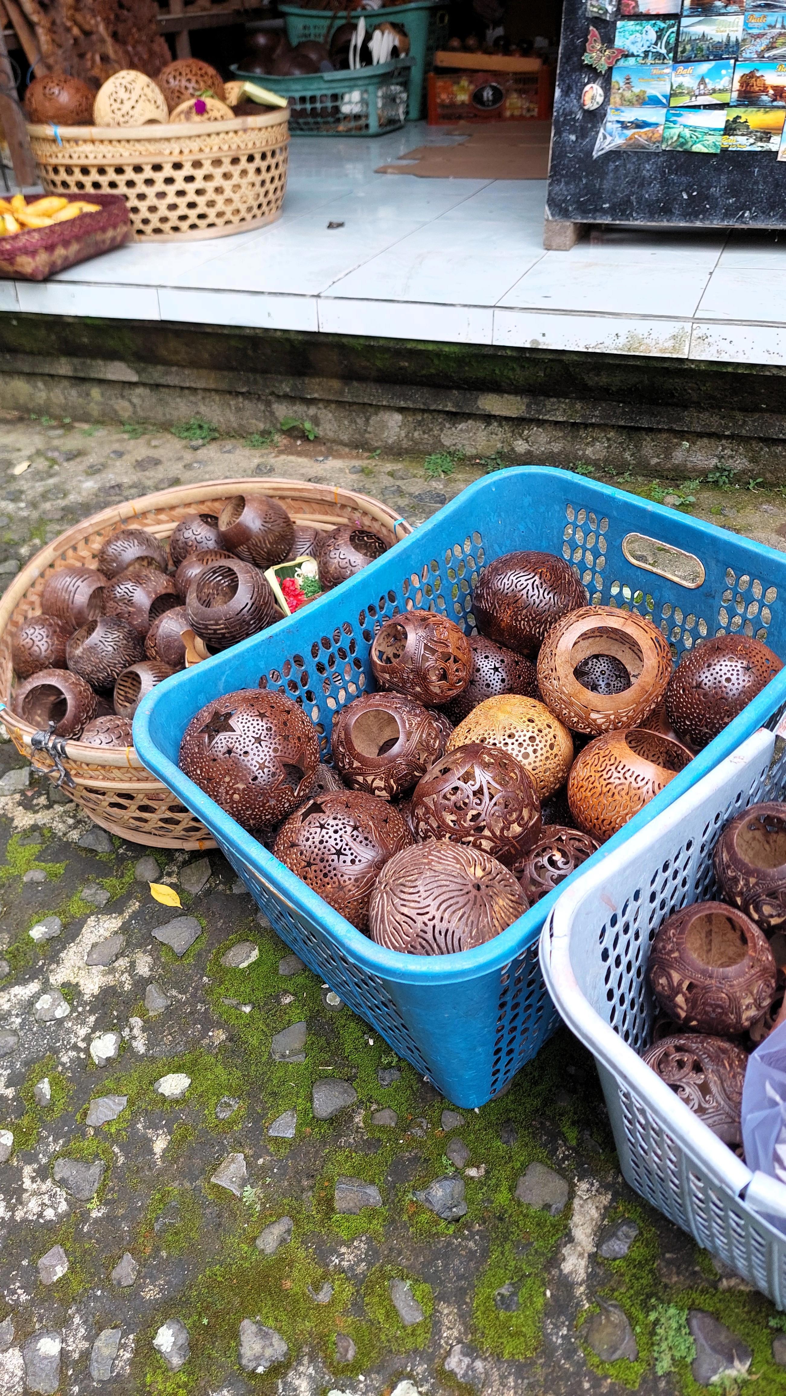Тяжко спускаться, неподвижный воздух, духота давит. Перед выходом с лестницы с ларьками почувствовал запах пропавших морепродуктов, увидел ларёк с парнем что усердно вытачивал узоры на ракушках, видно где-то рядом находились необработанные моллюски. Получалось красиво, к сожалению, не снял, напротив него балиец в годах плёл узоры на кокосах, спокойный, уверенный взгляд, чел знает себе и своей работе цену. Ну да, все работы восхитительны и дорогие.