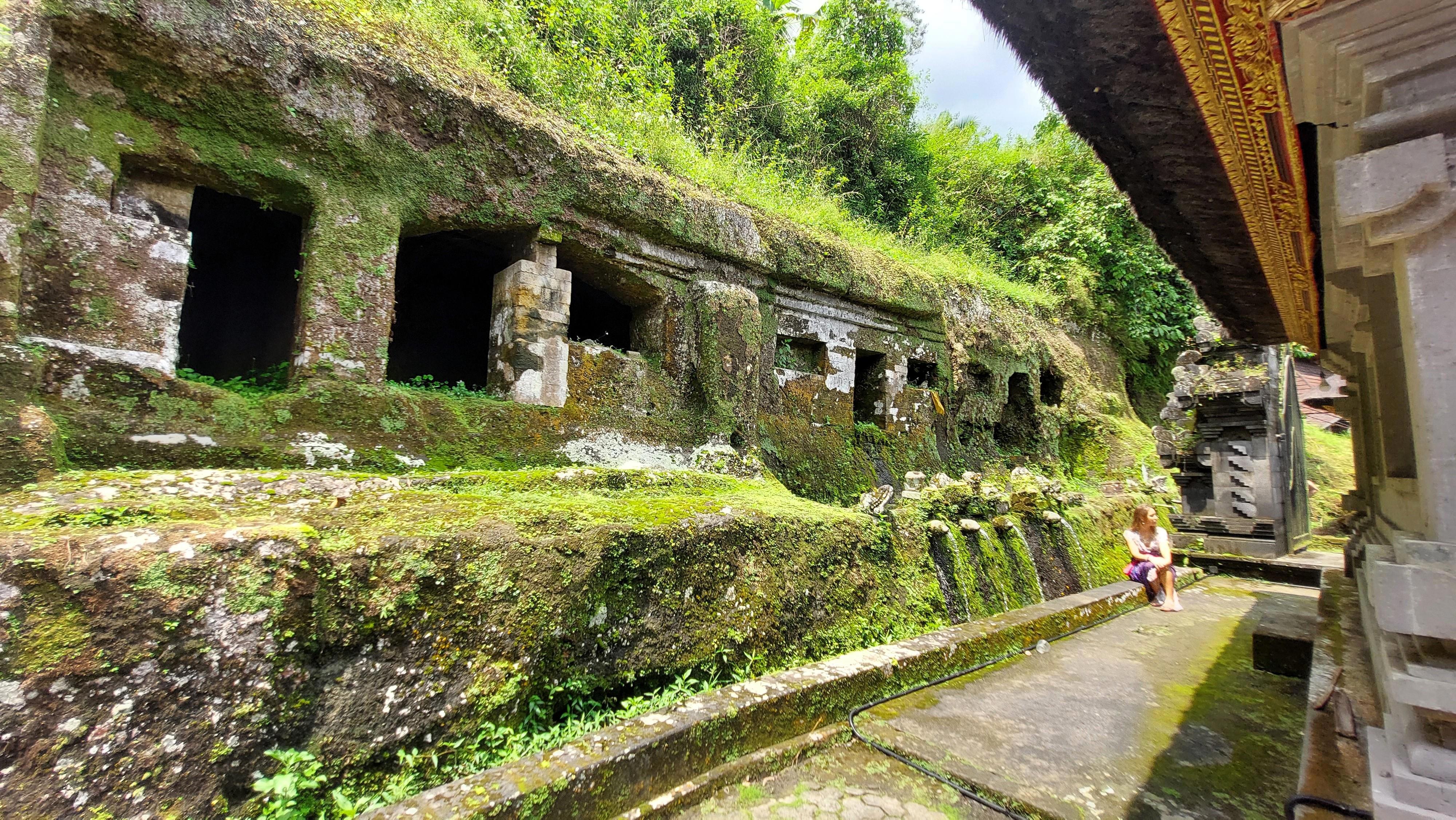 «На территории Гунунг Кави расположено десять гробниц. В высоту они достигают 7-8 метров. На лицевой стороне вырублены каменные барельефы в виде погребальных башен. В нижней части каждого размещена табличка с надписью, кому захоронение было посвящено. Раньше все сооружения располагались под скалистым навесом, но после землетрясения 1964 года он обвалился и обнажил их. Здесь есть величественные усыпальницы, высеченные в скалах, индуистский храм, буддистские молитвенные пещеры, рисовые террасы и другие интересные строения»