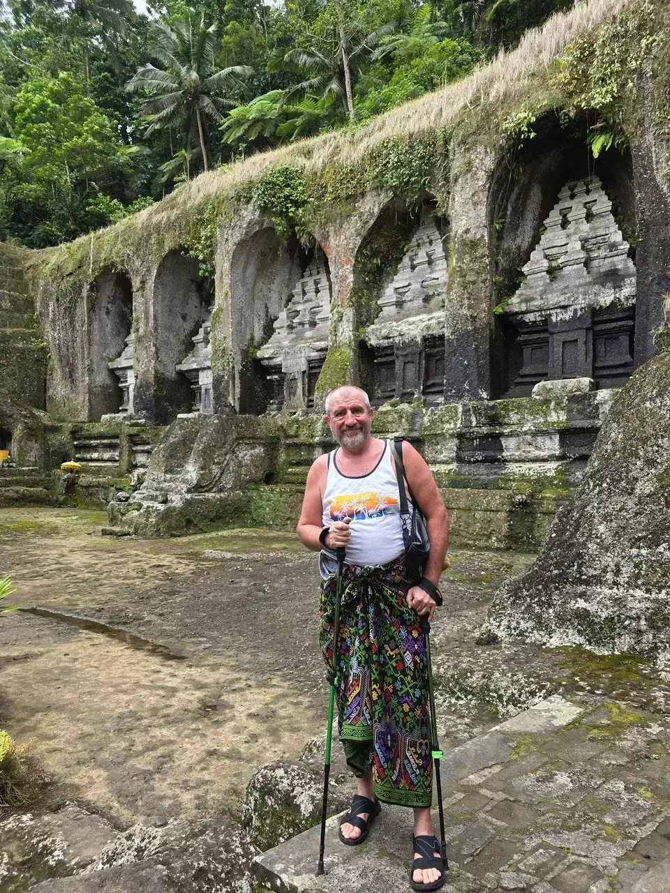 Нас остановили и обвязали саронгами с цветным узором, более качественными, нежели в пещере слона. Место святое, ходить с голами ногами нельзя. И снова лестницы, лестницы, почему-то всё интересное находиться возле рек, а они, как правило бегут внизу, а там нет ветра, душно.