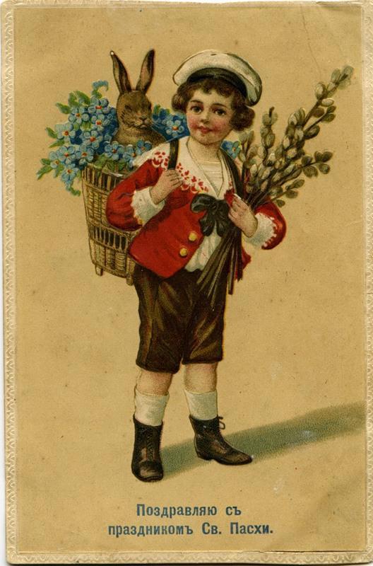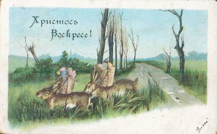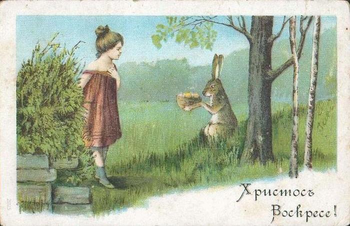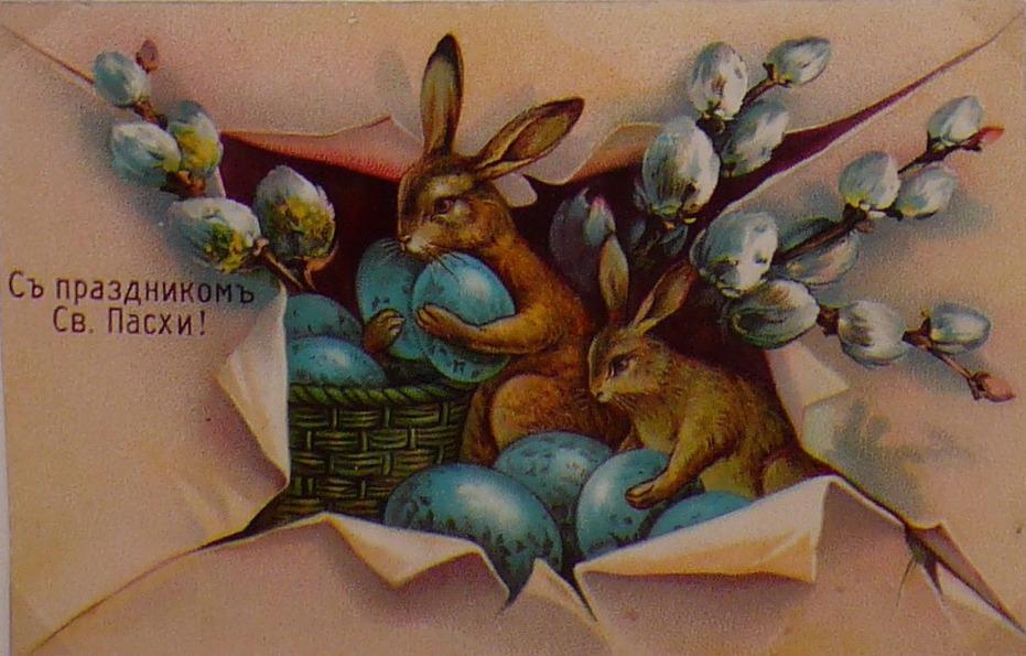 Традиция изображать на пасхальных открытках зайцев или кроликов пришла к нам из западной культуры. У древних германцев заяц был символом плодородия и ассоциировался с Остарой - богиней весны и красоты, которую чествовали в день весеннего равноденствия. Корни этого обычая уходят ещё глубже, поскольку заяц был животным, сопровождавшим греческую богиню Афродиту. Позже святой Амвросий, представитель христианско-католической церкви, использовал этого зверька в качестве символа Пасхи. Так заяц, шерсть которого меняет цвет по мере смены сезонов, стал олицетворением воскрешения Христа и его перерождения. Когда немецкие переселенцы приехали в Америку, то они привезли с собой традицию празднования Пасхи, а зайца заменили на кролика.