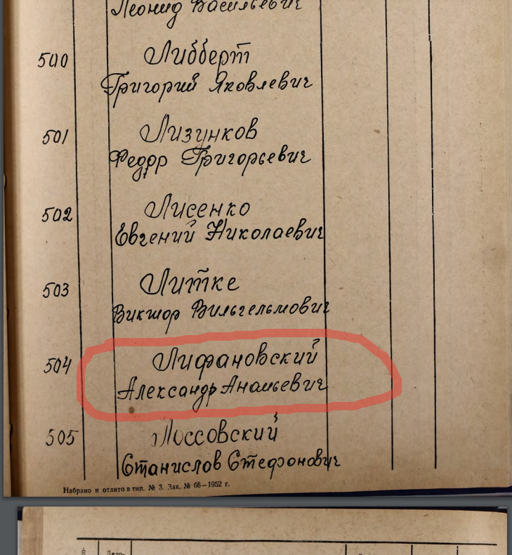 Следующее упоминание из прокуратуры СССР о реабилитации осужденного и расстрелянного в 1937 году по статье 58 Лифановского А.А. и то фотокопия из выписки, хранящаяся в личных архивах(. Что было с 1918 по 1937 рассказывают только семейные легенды, часть которых я помню очень смутно. Знаю только что прадедушка знатно покуролесил по Сибири с адмиралом и бежал от легендарной и непобедимой в Харбин, где до 1926 точно, а может и дольше, служил на КВЖД. Как он с прабабушкой оказался во Владике есть тайна покрытая мраком. И расспросить уже некого(.