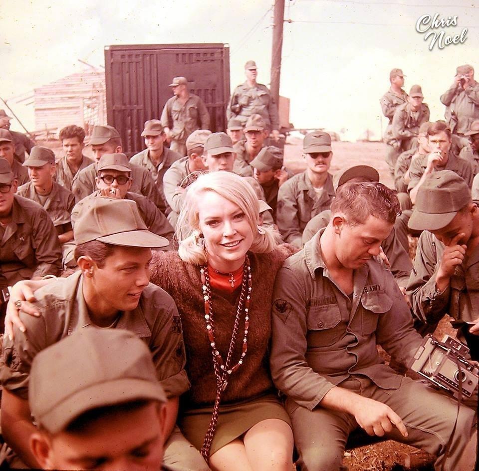 Крис Ноэль (1941 г.р.) — американская модель, модель в стиле пин-ап, актриса и певица. Бесстрашная девушка-блондинка ростом в 164 сантиметра получившая от Американской ассоциации армейских ветеранов высшую награду и статус ветерана военных действий. Думаете, наверное, съездила как наши поп-звёзды к военным, спела пару глупых песен, сфоткалась с солдатиками и всё. Собрала парочку гуманитарных грузов? Нет, тут ситуация другая.