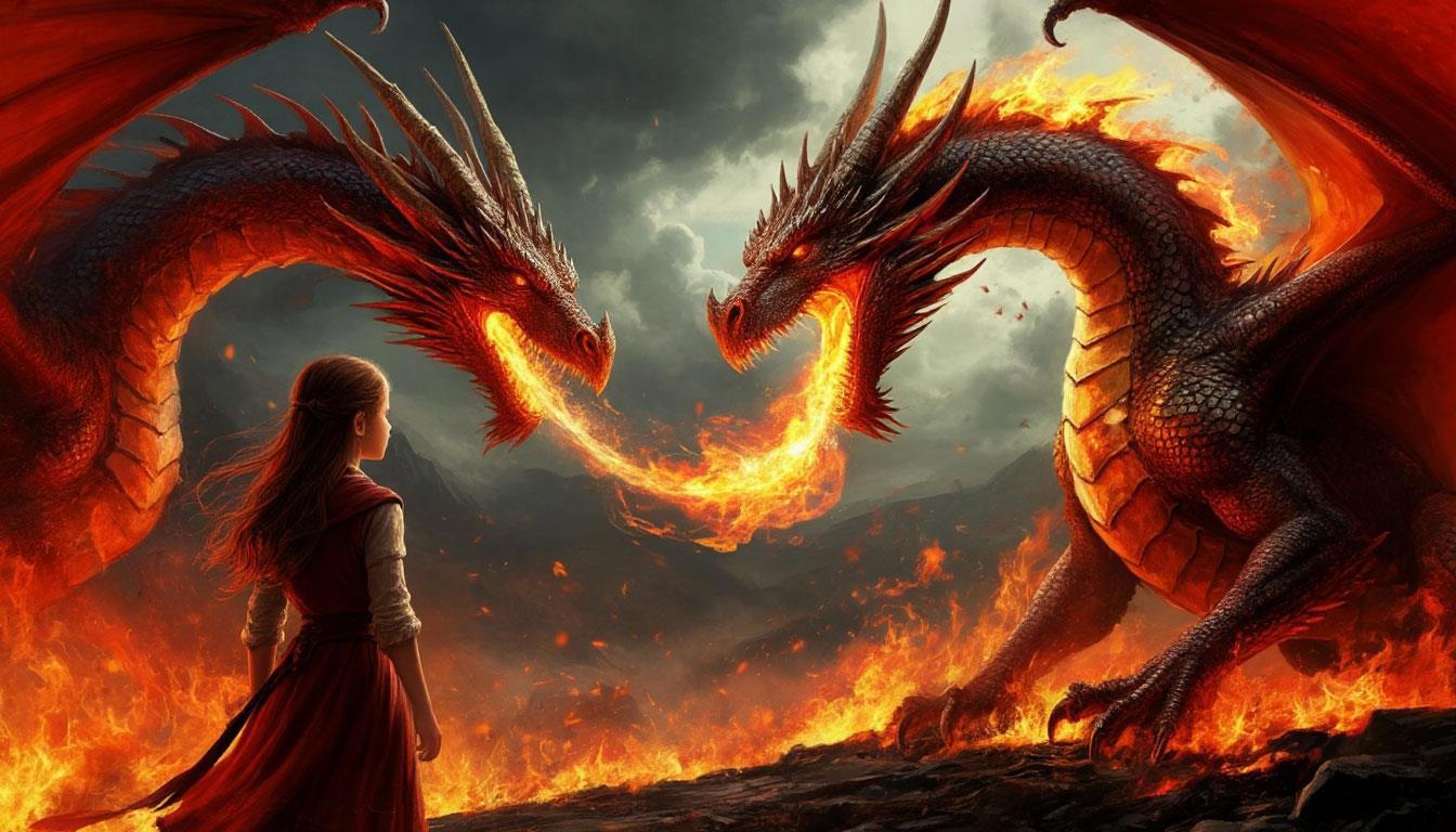 Следующая картинка сгенерирована лично мной в Шедевруме. Я просто хотел увидеть дракона, изрыгающего пламя на фоне девушки. А он выдал мне это.
