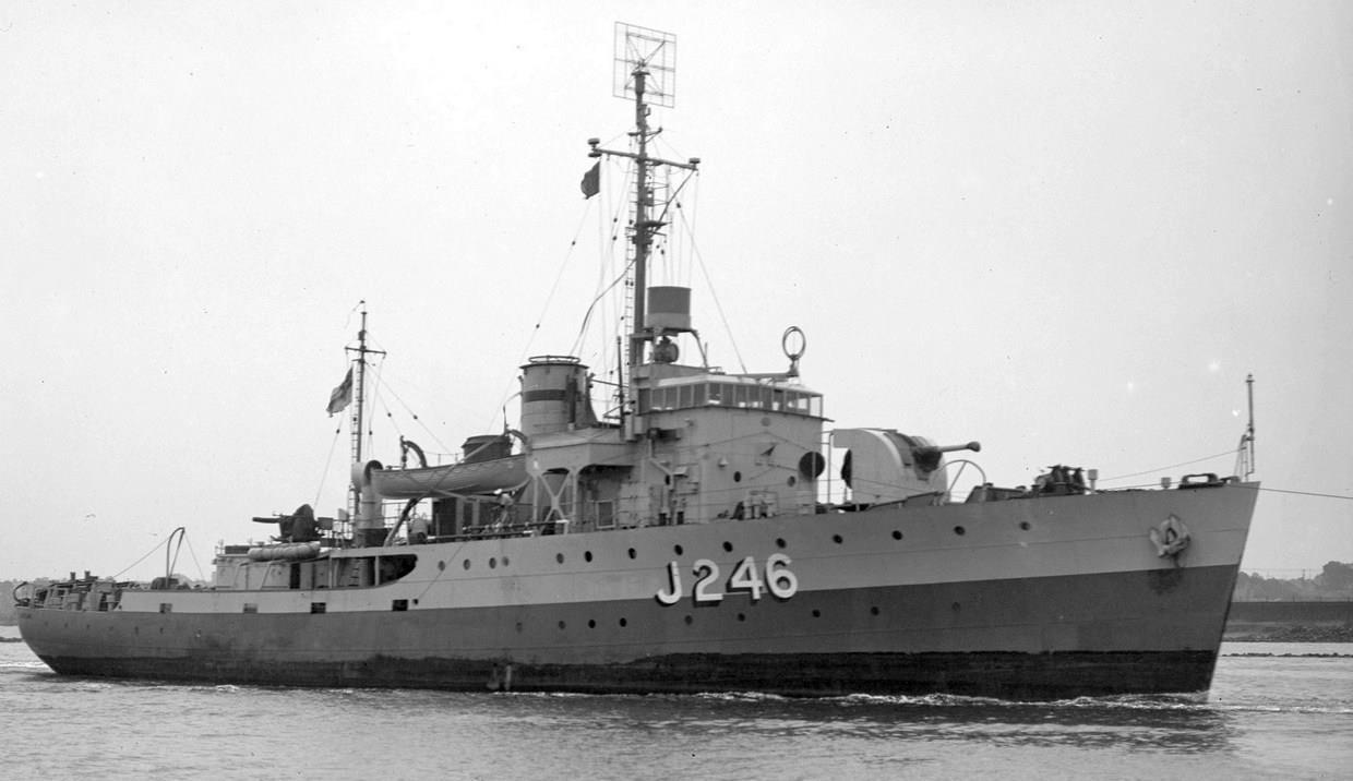 …и сопровождавший его боевой корабль «Бенгал». Его сейчас называют, кто тральщиком, кто корветом. Неважно в общем-то. Вообще говоря, если считать по вооружению и другим характеристикам, то он был не очень-то и «боевой» – из вооружения у него одна пушка калибра 102 мм, три «Эрликона» да глубинные бомбы. Таких кораблей было много, и найти фотографию именно «Бенгала» пока никому не удалось. Все показывают однотипные корабли. Я выбрал фотку получше: