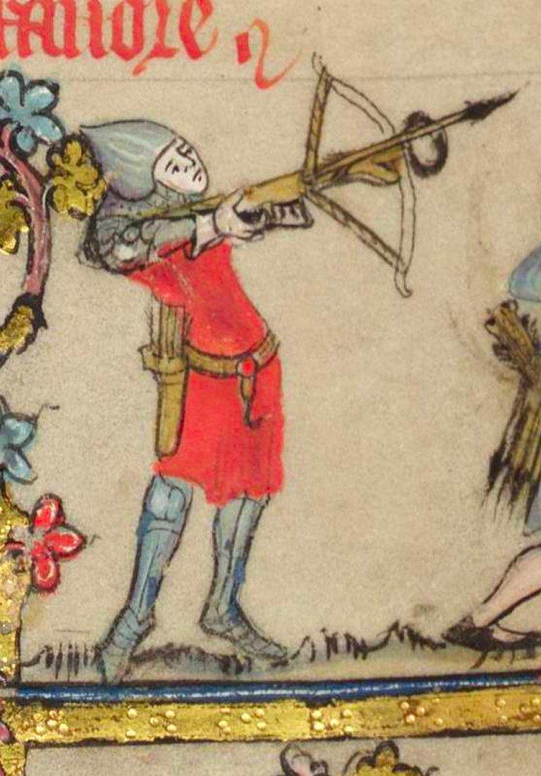 Чтобы понимать разницу между большим военным и охотничьим арбалетом (который мало чем отличался от малого военного), посмотрите на эту картиночку. Здоровенная хероболда - это большой военный арбалет. Размах плечей и длина ложа вполне могли достигать полутора метров, энергия выстрела 350+ джоулей. Это очень мощное оружие, вдвое а то и втрое мощнее малых арбалетов. Рядом арбалеты с композитной и стальной дугами, но уже в "нормальных" габаритах.