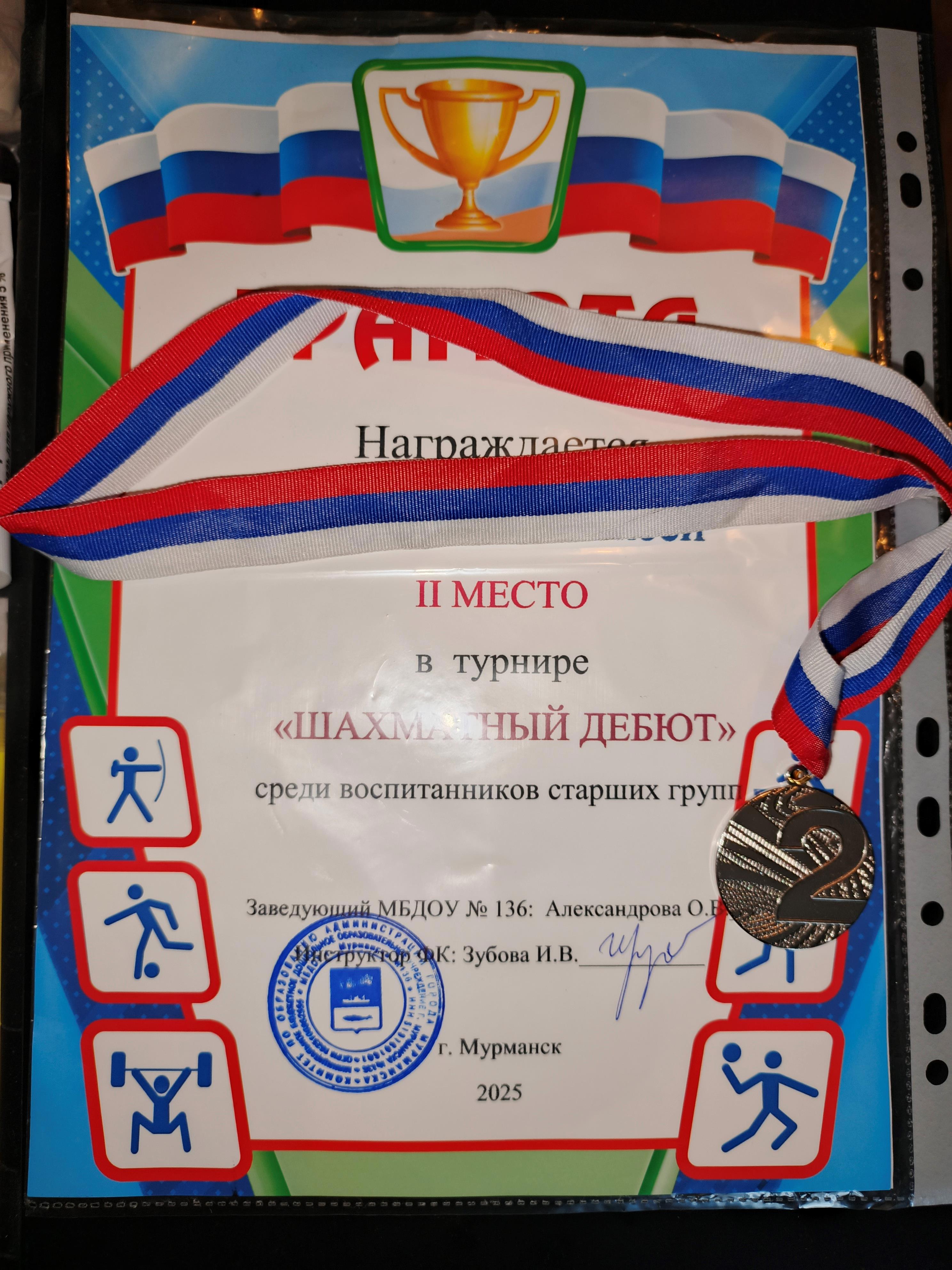 Мы ещё ходим в детский сад, но наши первые соревнования по шахматам окончились вторым призовым местом!
