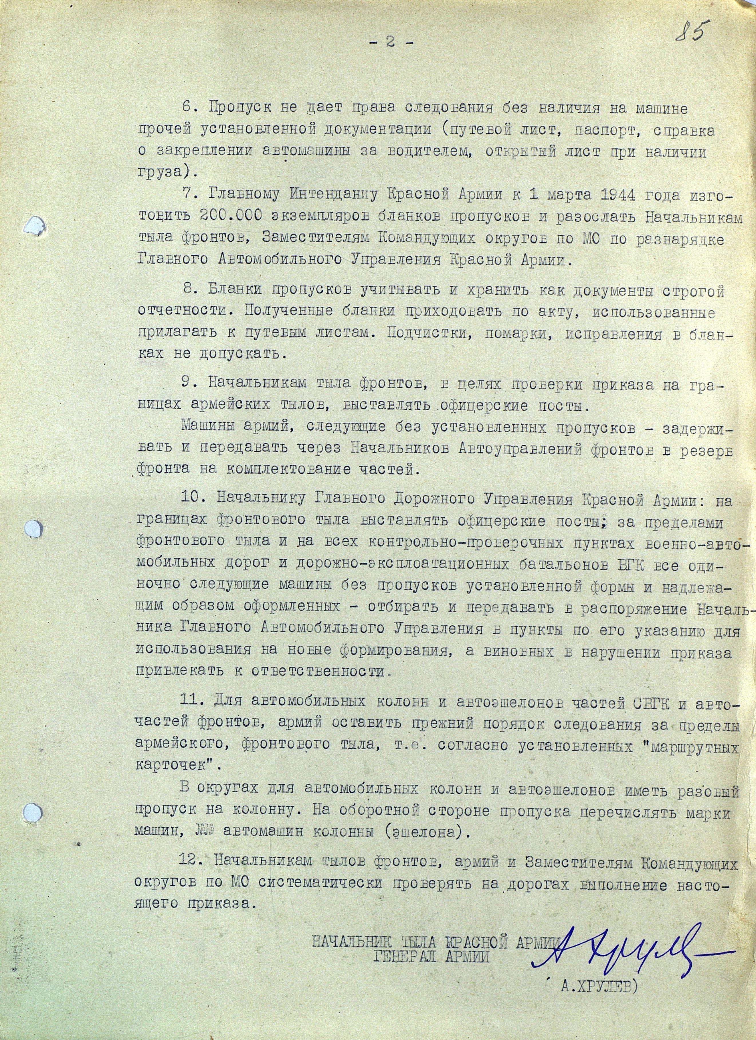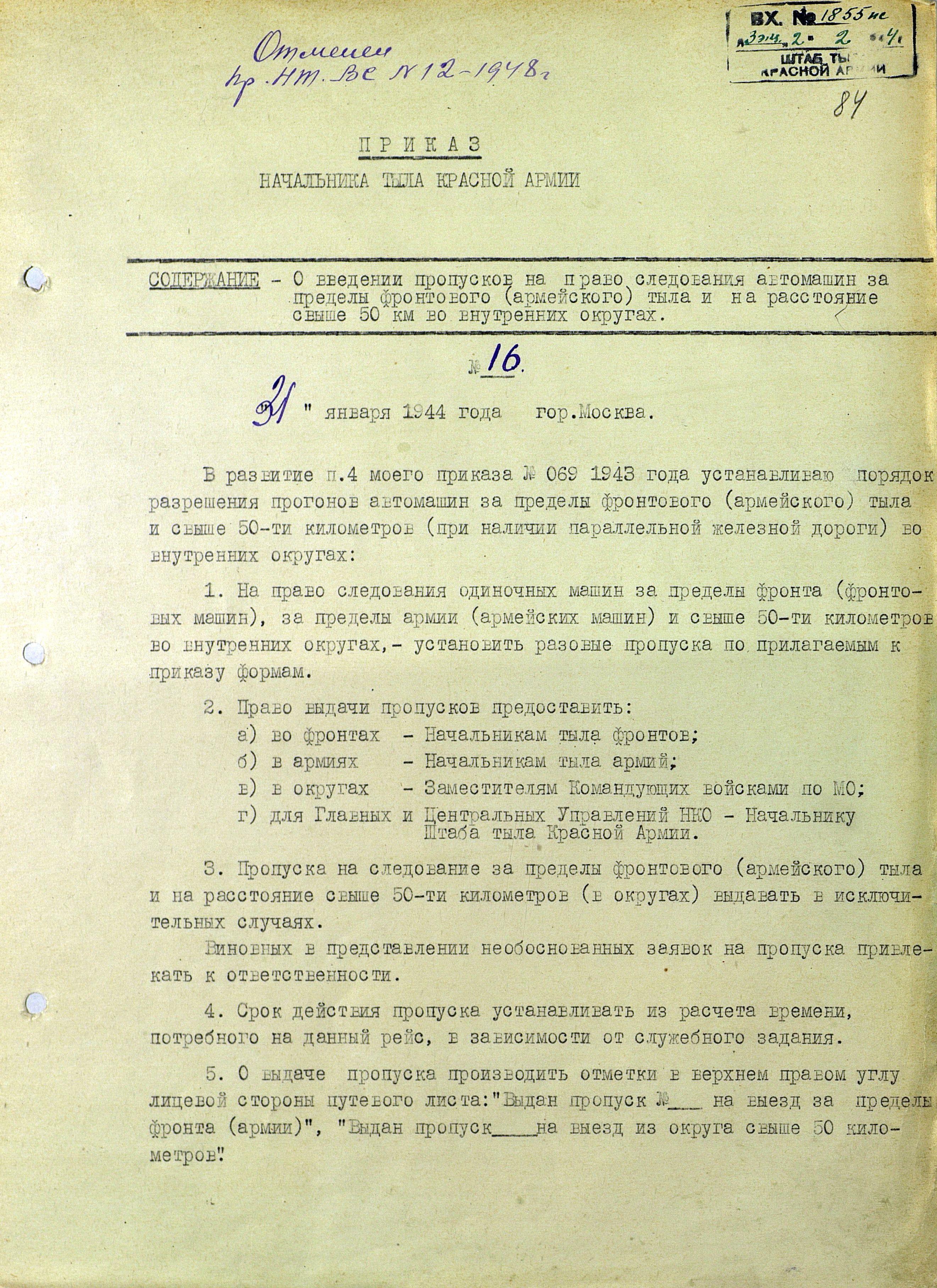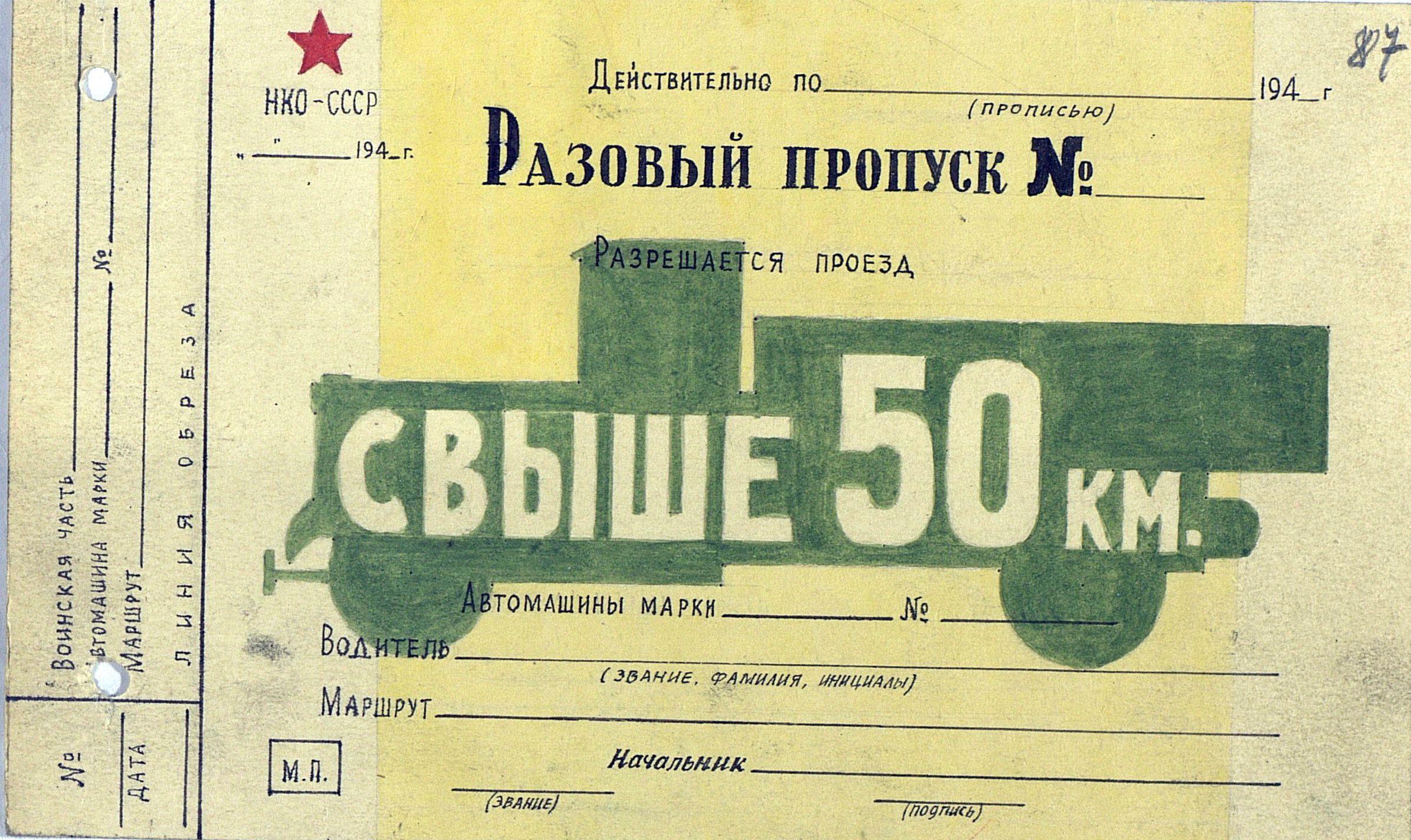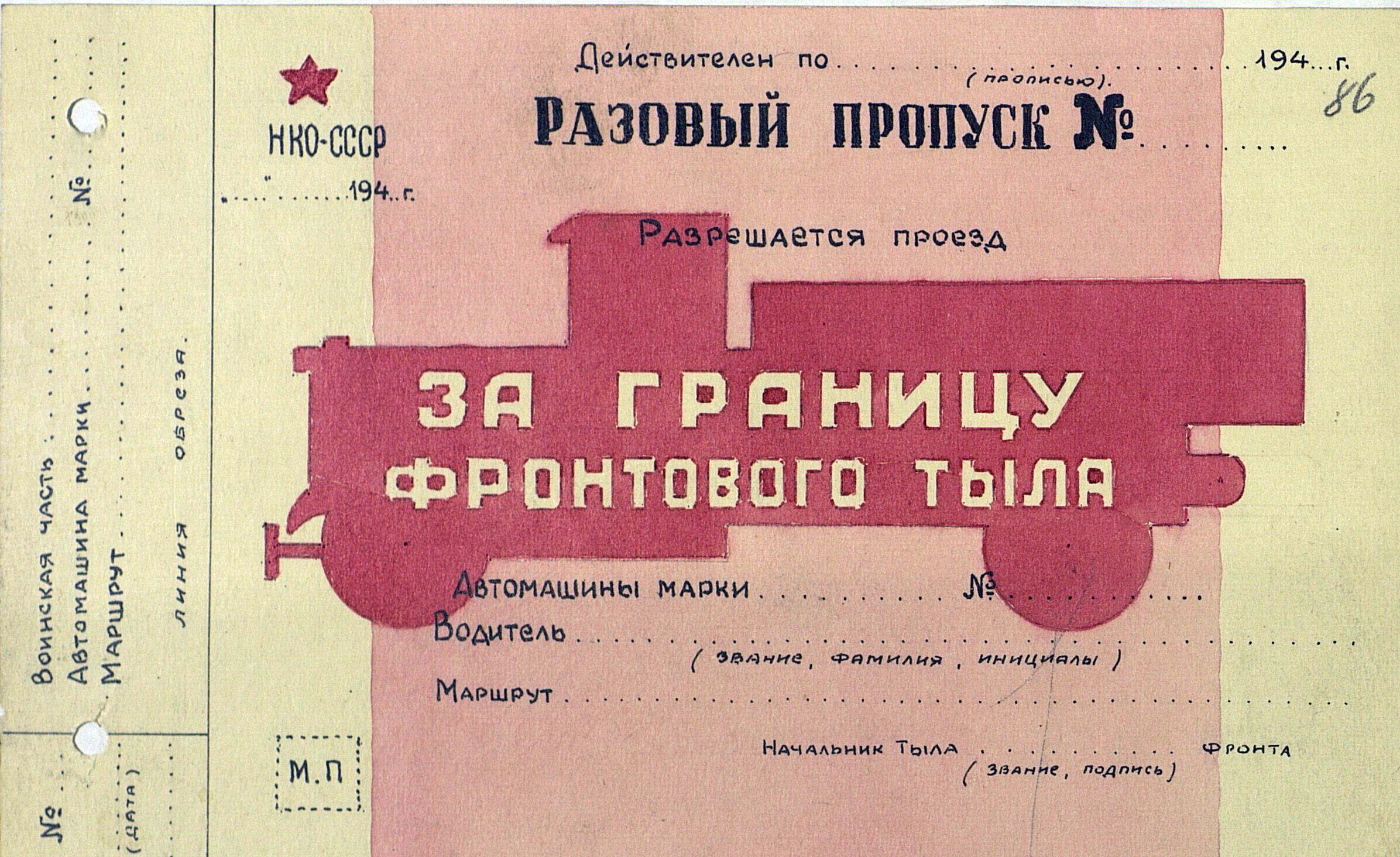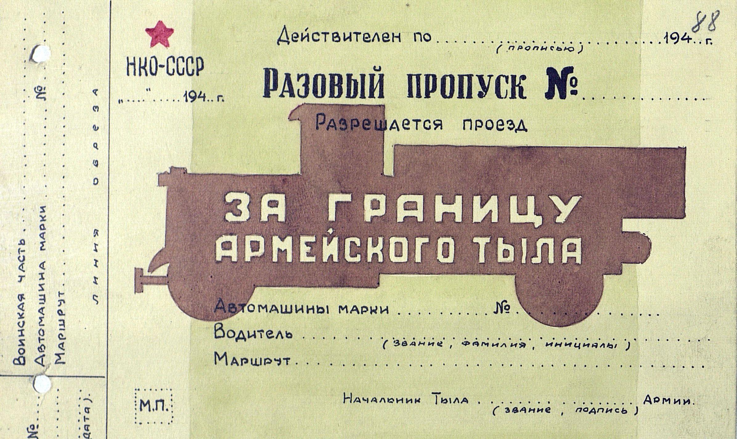 О пропусках на право следования машин за пределы армейского и фронтового тыла
