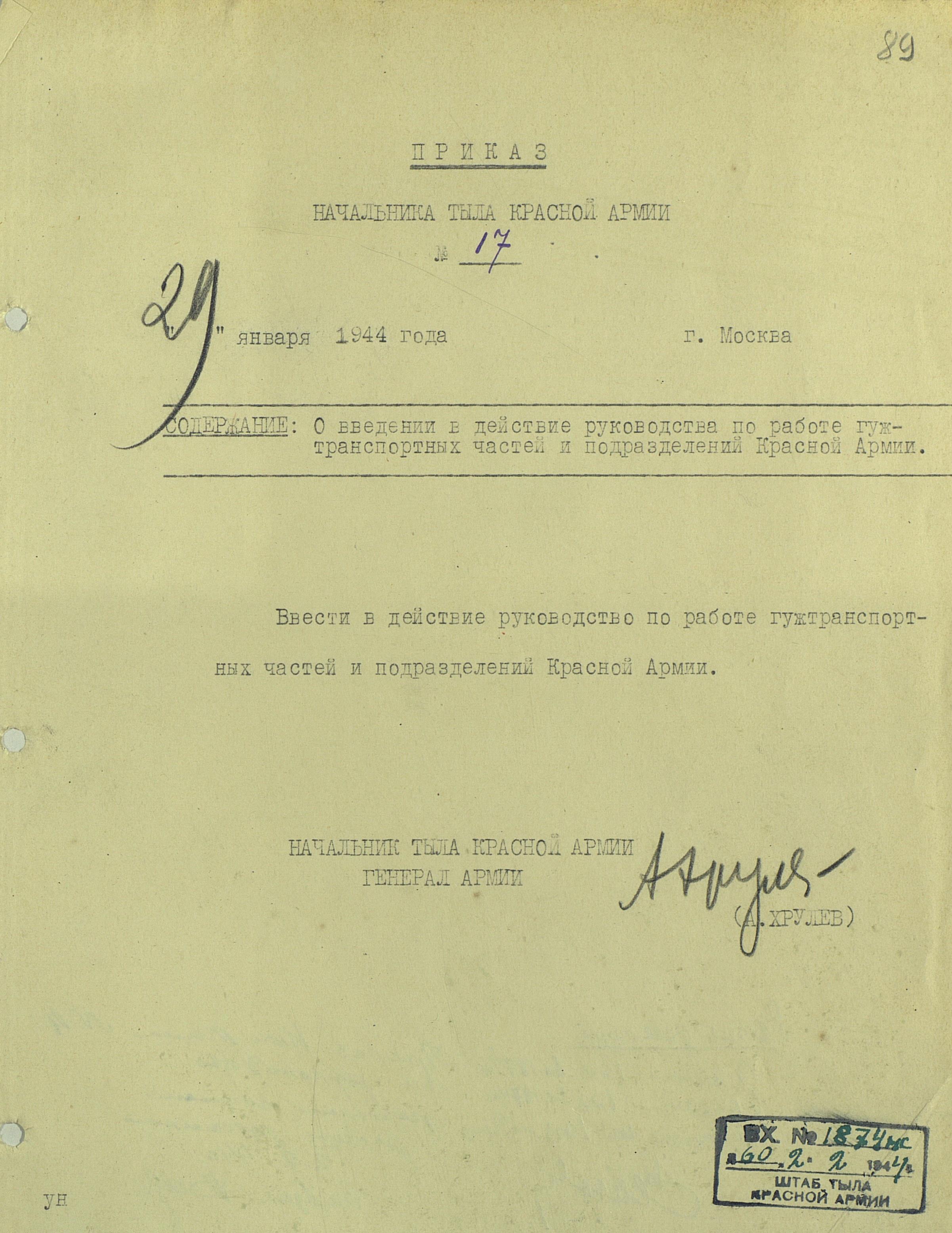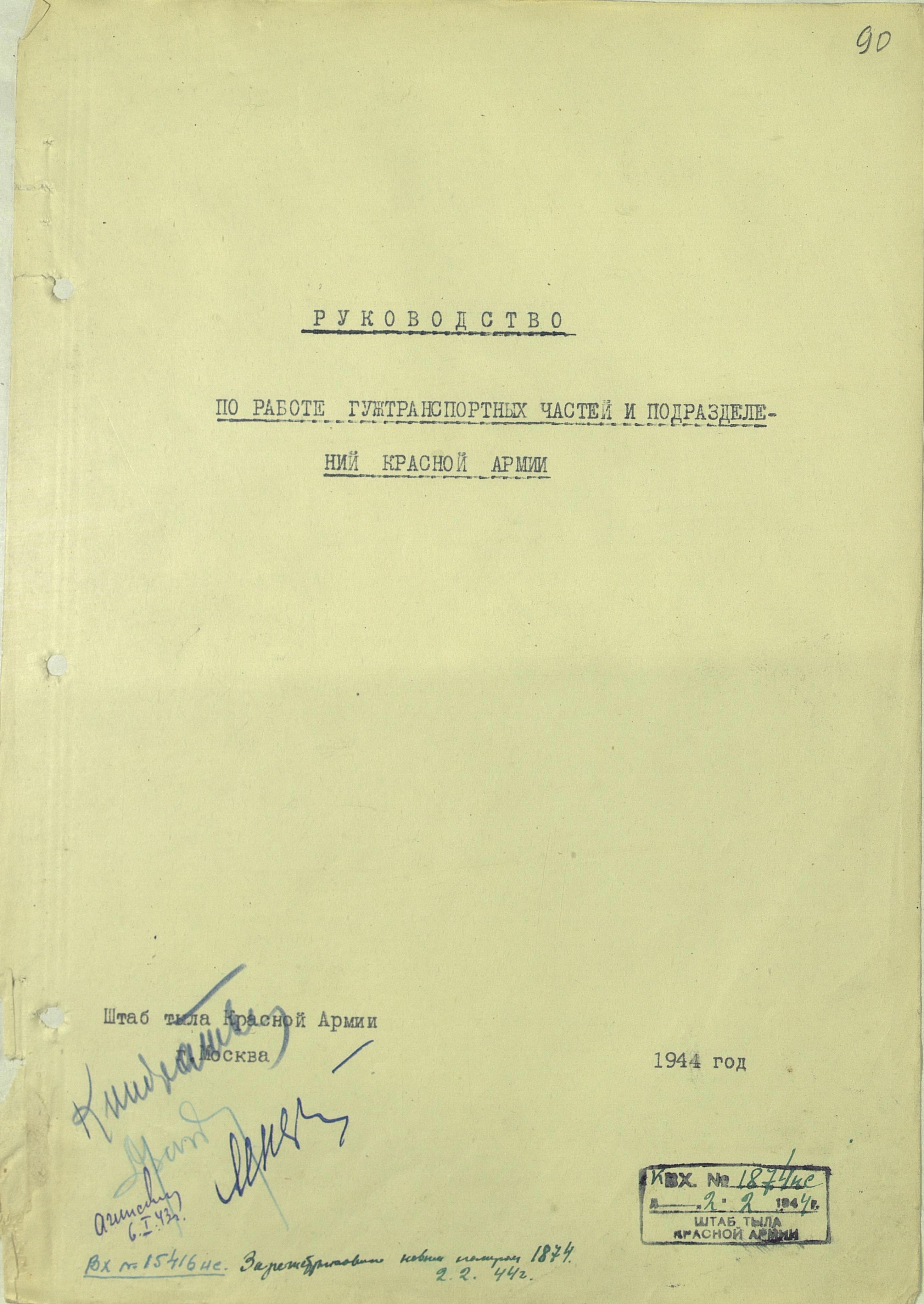А сегодня поговорим о другом документе, приказе начальника Тыла Красной Армии от 29.01. 1944 г. № 17 Руководство по работе гужтранспортных частей и подразделений Красной Армии.