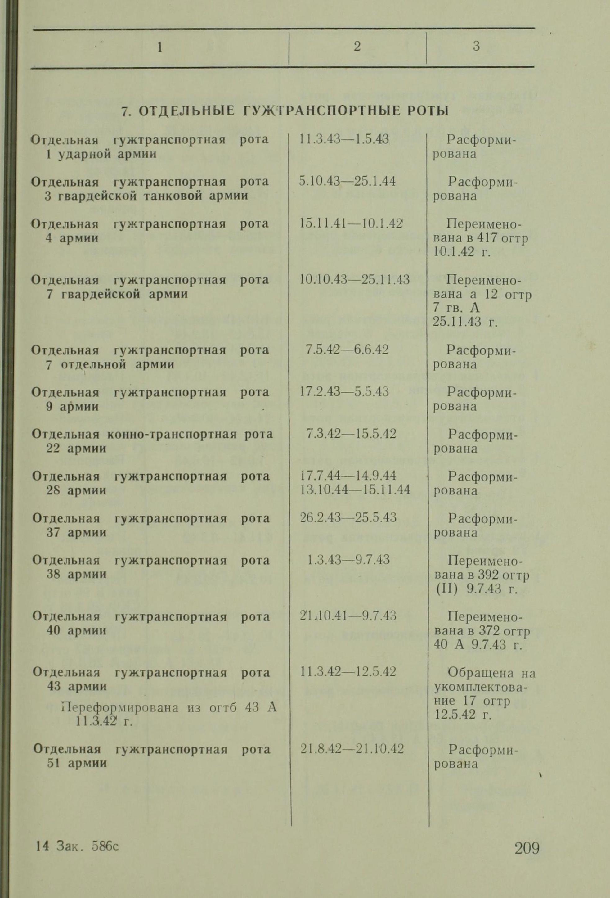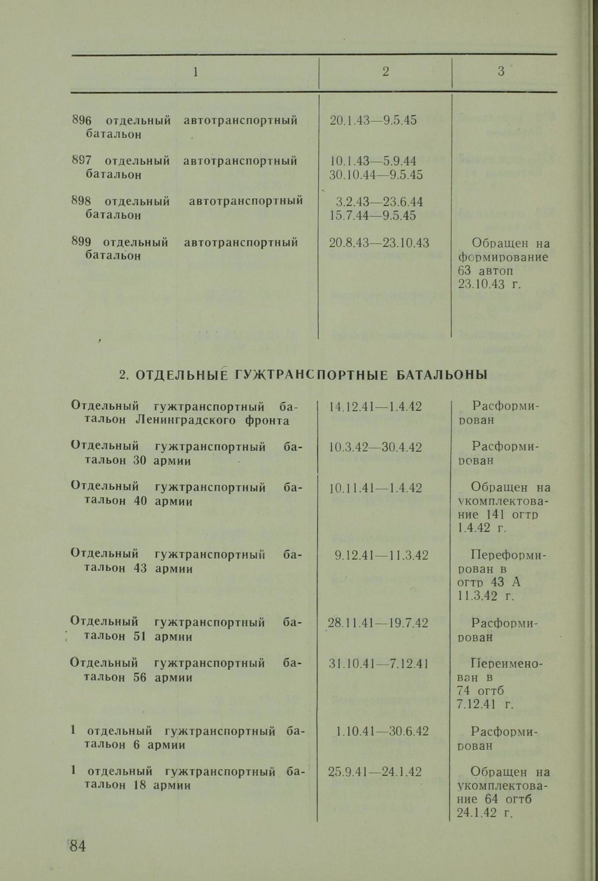 В перечень вошли Отдельные гужтранспортные батальоны, Отдельные автогужтранспортные батальоны, Отдельные гужтранспортные роты и даже Отдельный верблюже-вьючный батальон.