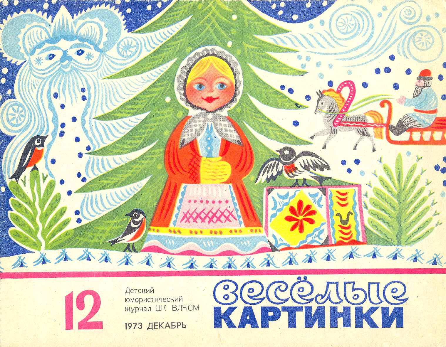 1973 год. Второй год подряд - одинаковое написание названия журнала на обложке. Рекорд! Лошадку, дровеньки, мужичка, падчерицу и Морозко нарисовала Татьяна Колюшева, известный художник и мультипликатор, художник-постановщик знаменитой серии "Баба-Яга против" и автор заставки к "Веселой карусели".