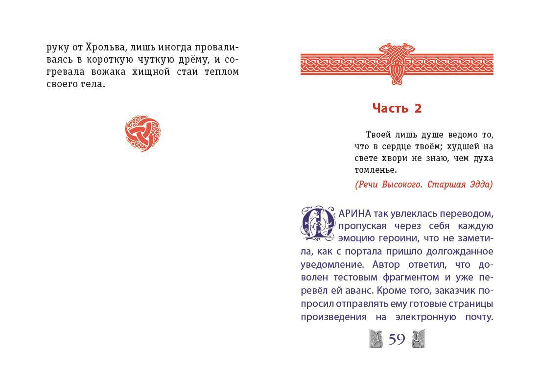 Кто читал, знает, что в тексте у меня как бы два параллельных сюжета, и издатель заверстал текст второй сюжетной линии другим цветом! Иллюстрации он взял исходные — те, что я присылала, цветные. (В макет полноформатной чёрно-белой книги он раньше ставил чёрно-белые.)