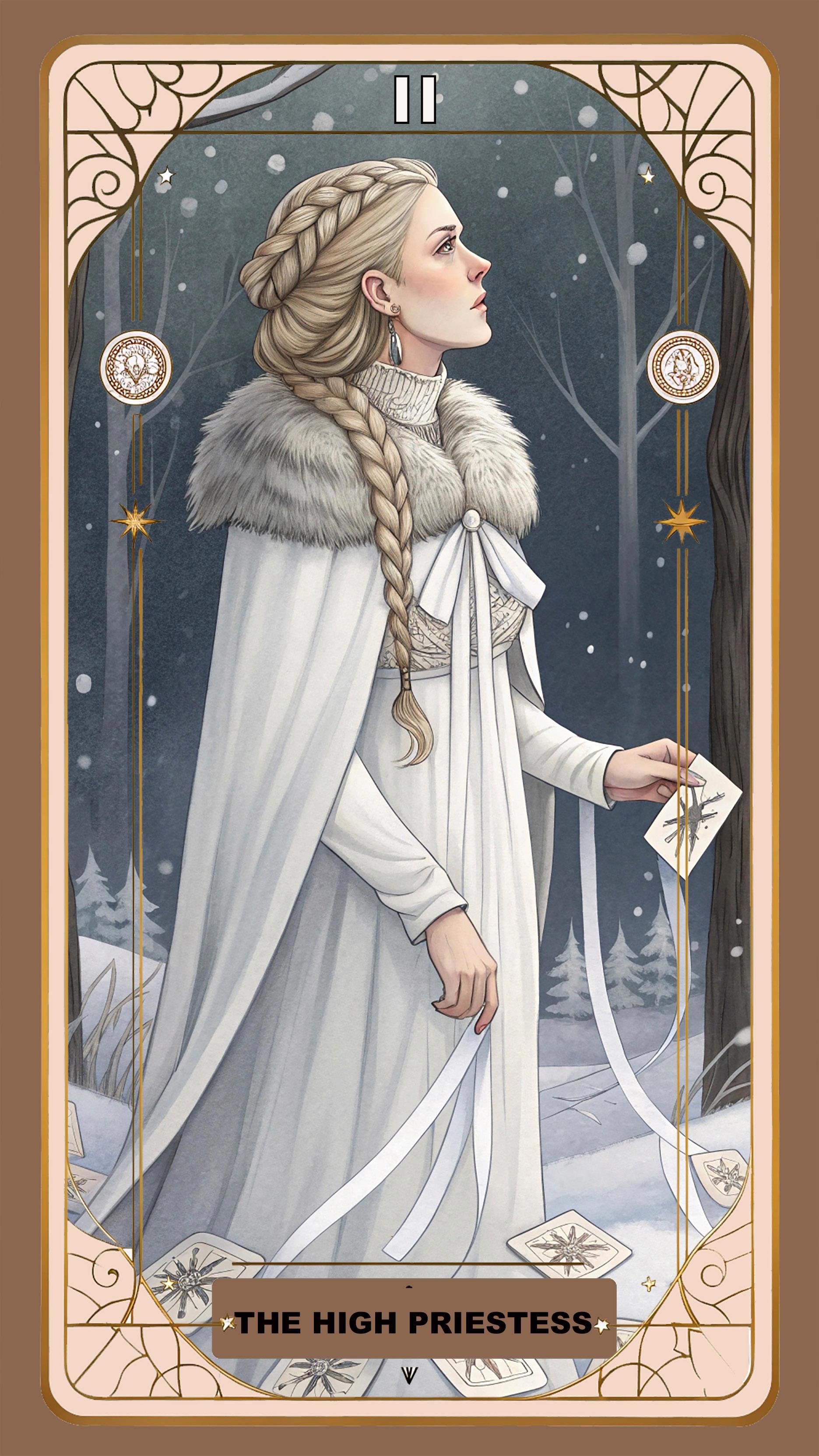 В прямом положении: Молчаливое знание. Интуиция, пришедшая из глубины веков. Возможность прикоснуться к запретному, не нарушив баланса. Союз с потусторонним — без страха, но с уважением. Женская сила, не требующая доказательств.