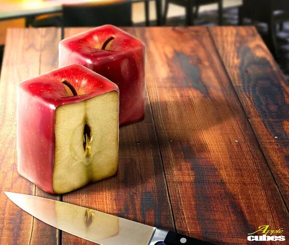 И совсем не фотошоп, а самые настоящие квадратные яблоки, которые выращиваются на плантации в Чхунджу, Южная Корея.