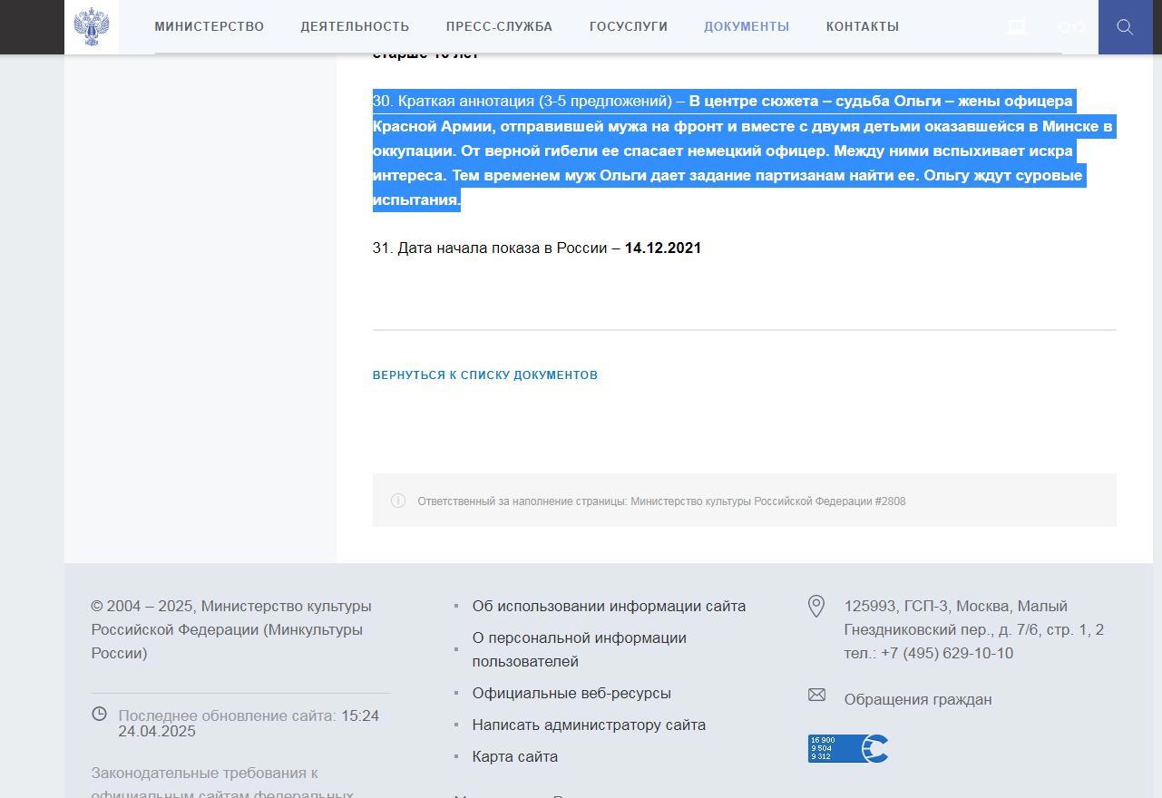 На дату (п.31. Дата начала показа в России – 14.12.2021) внимания не обращайте. Последнее обновление сайта Минкульта - 24.04.2025. Так что ничего за 4 года в головах "минкультурных" чиновников не изменилось.