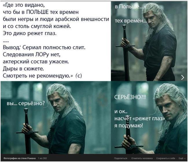 Вот серьезно, что же вас так зацепило-то, а? Чуть ли не в каждом упоминании Сериала Ведьмак, вижу людей которых бесят хейтеры сериала. И у всех одна и та же фраза, ну блин, а что такого? Ну негры, ну эльфы - негры, ну и ЧЁ? Ну как сказать? Да тут много ЧЁ, если честно... Да, мне тоже этот сериал не нравится из-за подбора актеров. И не в плане их игры, а соответствия миру. Я ранее высказал вам свое мнение и не буду тут повторяться, кому интересно, то найдет. Но блин, делать из этого мем? Чиёоооорт, на меня первый раз делают мем....