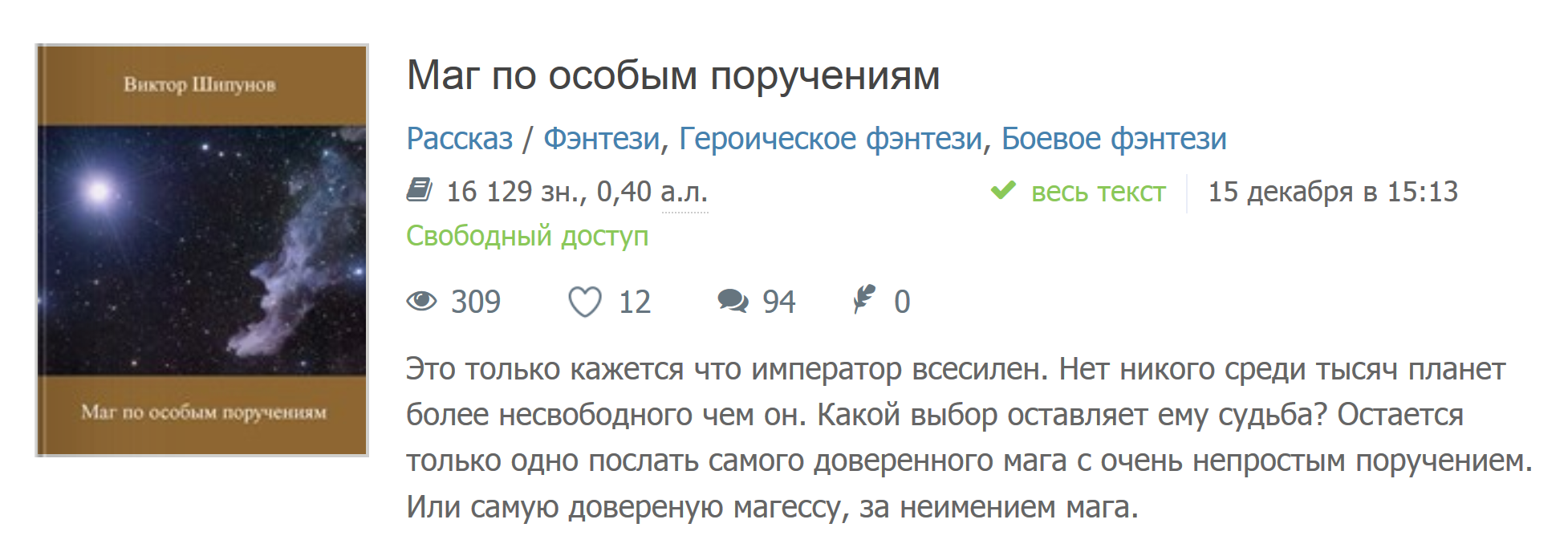 Автор: Виктор ШипуновЭто мой новый рассказ, написанный специально на конкурс «Нежная сталь». Сообщаю всем читателям, что он принят и находится на четвертой позиции. Что из этого выйдет — увидим. Я планов не строю, тем более что всех ждет самосуд.