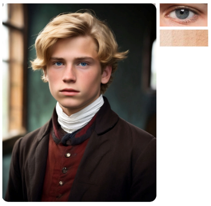 Вот такими нарисовались данные персонажи в моей голове с помощью референсов и генерации изображений в Шедверуме. В первой главе романа нашлось место для описания внешности всех, кроме Марка. Однако всему своё время — будет оно и для студента-целителя. Ну, а взявшись за написание второй главы, я уже создала визуальный образ Элизы Фогель — изысканной аристократки из высшего света.