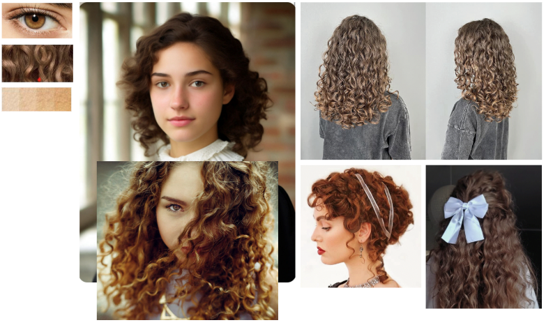 Справа расположены референсы для причёсок и распущенных волос Греты: