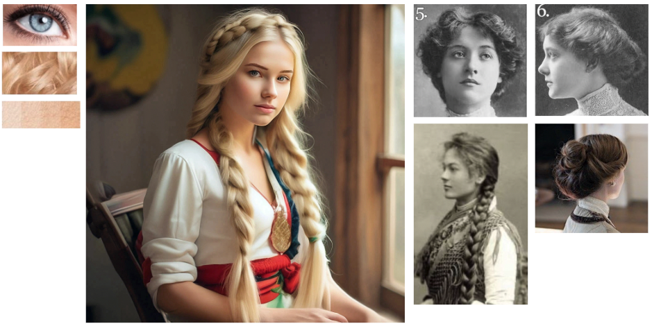 Но для ретеллинга это не беда, поэтому я воодушевлённо взялась за поиски референсов для моих уже довольно переделанных героинь и героев. А избороздив просторы интернета, попробовала создать их сама, используя Шедеврум. Генерацией изображений я осознанно не увлекалась, так как поставила перед собой цель поймать «свой образ», достаточный для написания текста, а не создавать полноценную картинку к книге.