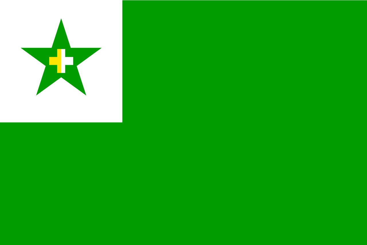 Флаг Internacia Katolika Unuiĝo Esperantista - Международного католического объединения эсперантистов, действующего с 1910 года. Зелёный флаг и зелёная звезда - символы эсперанто, плюс в звезде крест в папских цветах, золотом и белом.