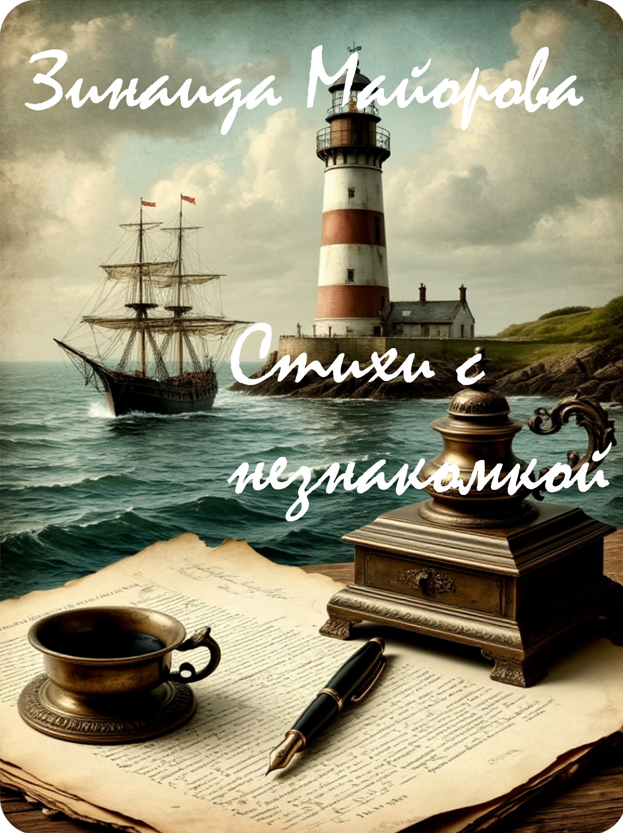 Автор: Зинаида МайороваВсю неделю размышляла, не выложить ли отдельным сборником стихи, написанные в рамках флешмоба от Idegen. Всего-то получилось суммарно двадцать строф с небольшим. Потом рассудила, что размер в поэзии, конечно, имеет значение, но это если речь идёт о стихотворном размере, а не о количестве знаков. Робко попыталась нарисовать в Шедевруме обложку – набрала в промпте семь слов: перо, бумага, чернильница, море, корабль, маяк, любовь. И с первого раза – такое со мной редко бывает – он нарисовал мне ровно то, что я хотела. Любовь изобразил как чашку чая, а я очень люблю чай. Это главное топливо для моего творческого начала. А мой художник подобрал красивый шрифт для обложки вместо моих корявых рукописных надписей. Вот что получилось: