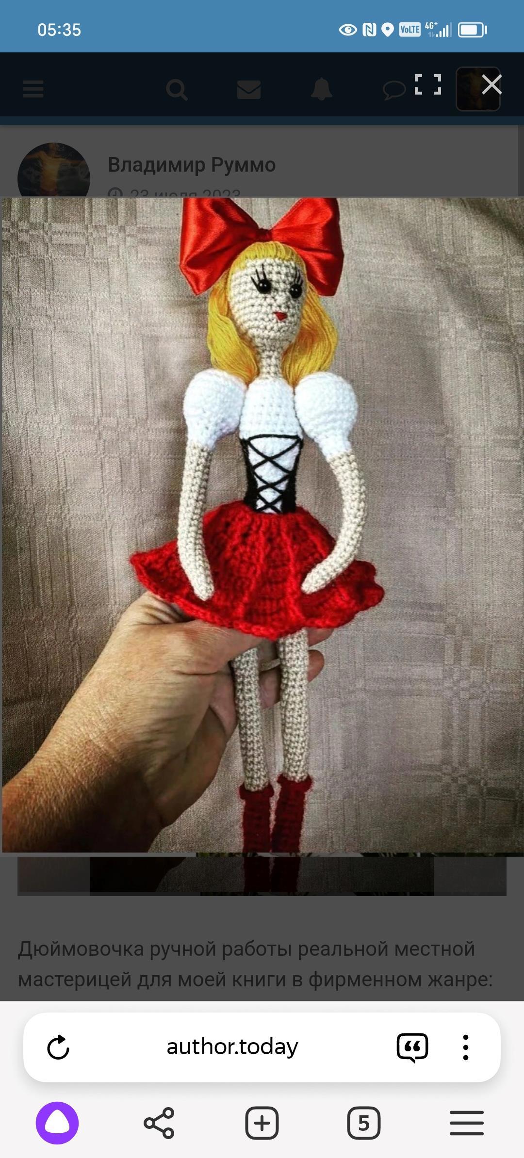 А ещё... У меня иллюстрация к э-главе выдала внекодовую иллюстрацию. В каком смысле?!... Я взял фото своей вязоной дюймовочки(официальную иллюстрацию на момент создания игрушки) и через паинт грубо добавил её на иллюстрацию Шедеврум. А потом думаю, дайка я уберу водной знак. А вместе с ним уберается и чб Сантиметра. Я так прозевал своего перса.
