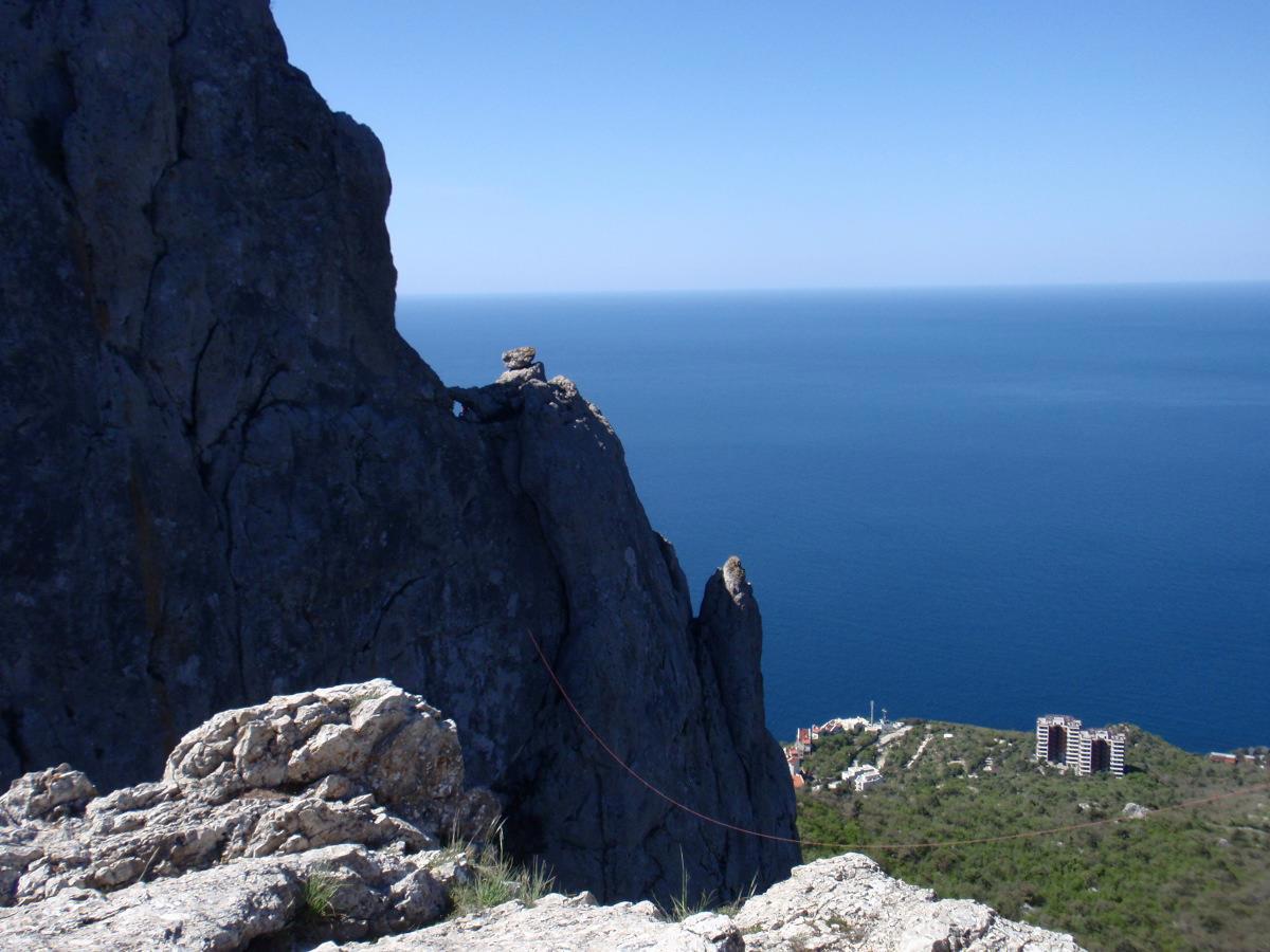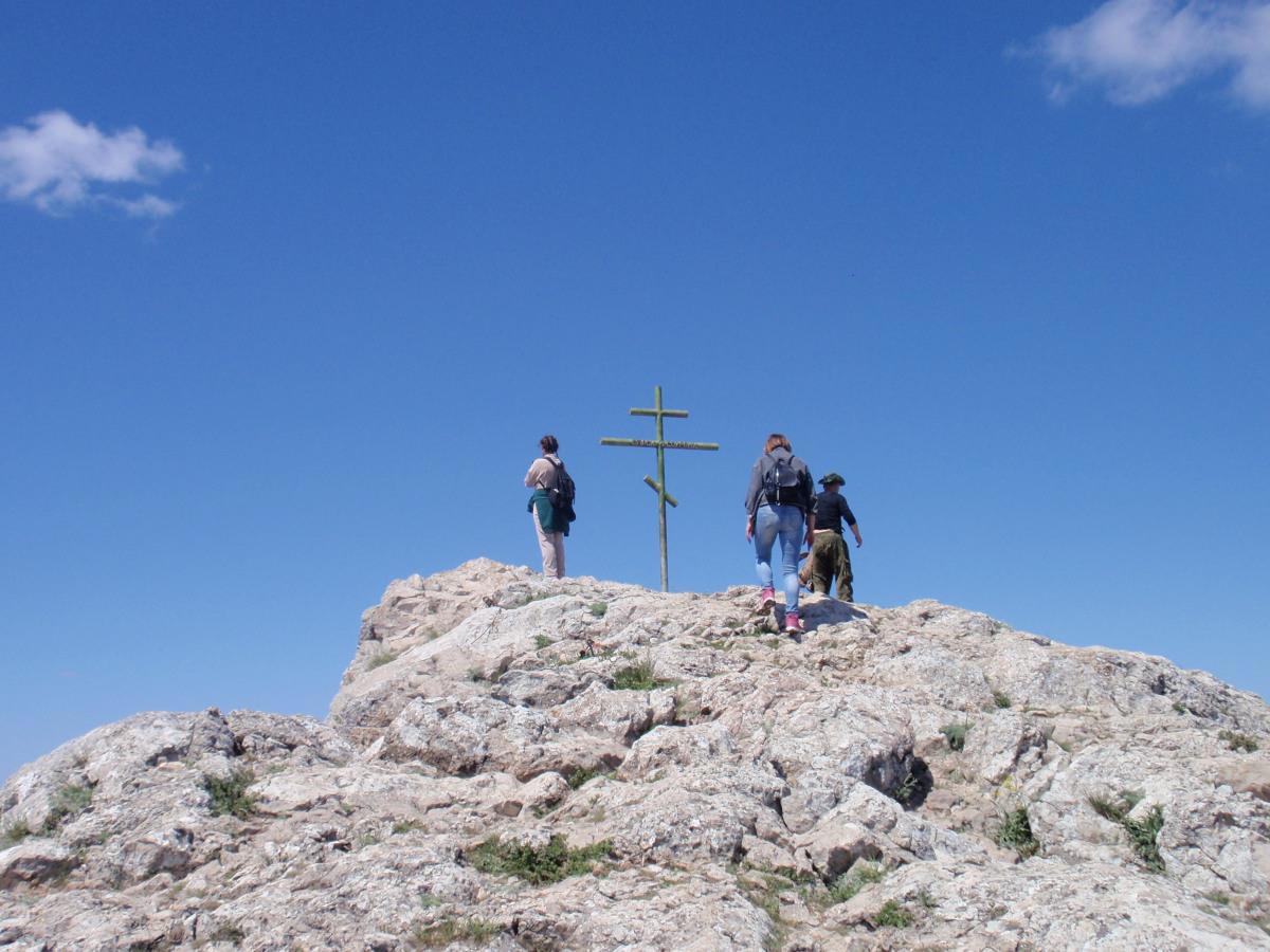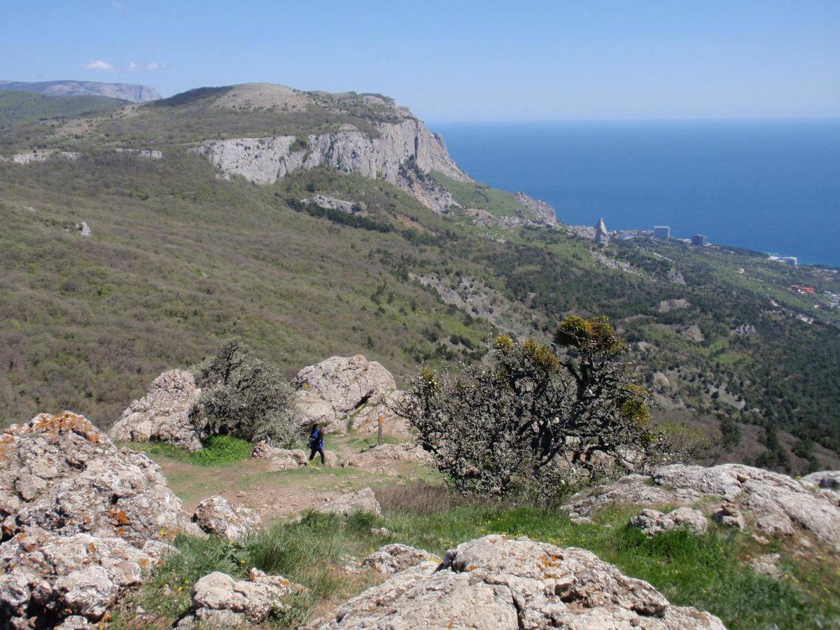 На самой вершине энтузиасты вмуровали крест, дойти до которого становится самоцелью. Мы тоже дошли, но потому, что с вершины горы открывается потрясающий вид – с одной стороны – бескрайнее Чёрное море, с другой – Байдарская долина.